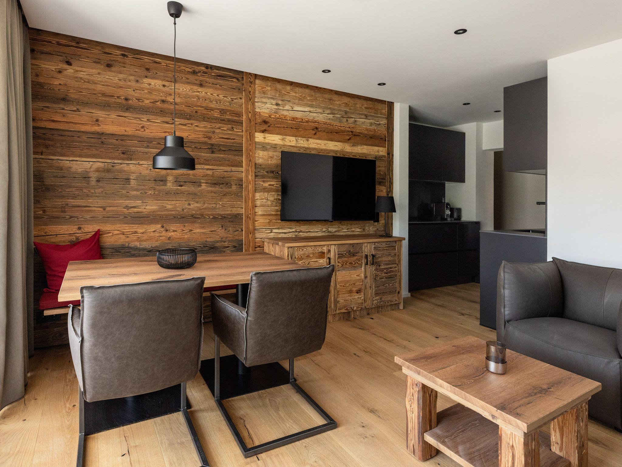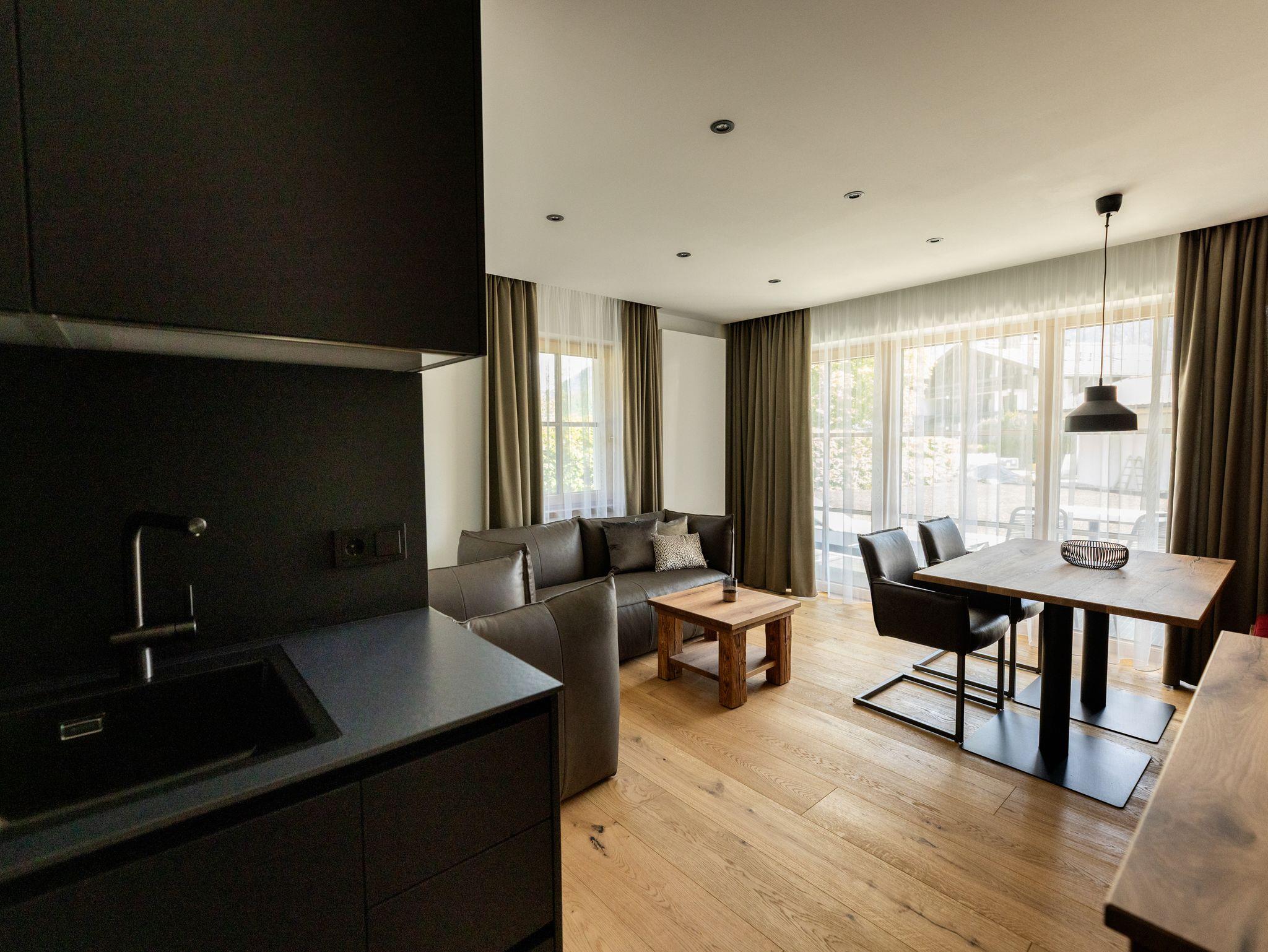 Ein Platz zum Wohlfühlen mit viel Komfort und tollem Ausblick in die Berglandschaft: Diese großzügig gestaltete 50?m²-Wohnung begeistert mit modernem Design, offener Raumaufteilung und vielen hochwertigen Details – von der Espressomaschine über das Boxspringbett bis zur Regendusche. Auf der großen Sonnenterrasse mit Liegestühlen lässt sich der Urlaubstag entspannt beginnen oder ausklingen.