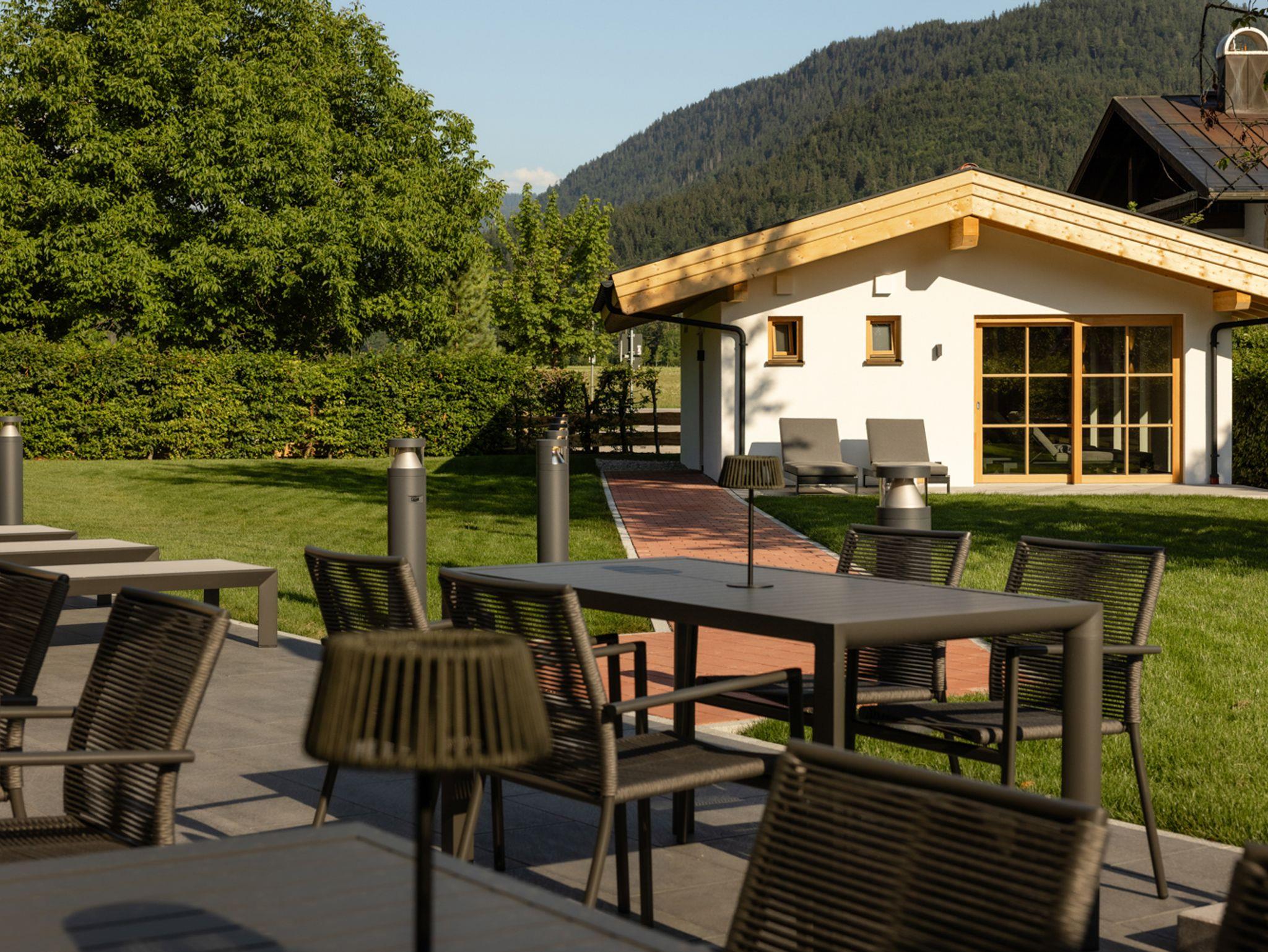 Für alle, die Ruhe mit Stil und Natur mit Komfort verbinden möchten: Sobald Sie Das Denisl betreten, stellt sich ein tiefes Gefühl der Erholung ein. Mitten im Herzen von Reit im Winkl, zentral an der Sonnenloipe, wartet ein neues Apartmenthaus mit 14 stilvollen, hellen Ferienwohnungen voller Flair auf Ihre unvergessliche Zeit im Chiemgau. Viel Altholz, gedeckte Farben, indirekte Beleuchtung, schwarze Armaturen und große Türen zu Balkon oder Terrasse machen Ihre Urlaubstage zu einem echten Design-Erlebnis. Freuen Sie sich auf bestens ausgestattete Küchen, einladende Essbereiche, gemütliche Ledersofas, große Waschtische, kuschelige Boxspringbetten und Regenduschen, die Sie rundum verwöhnen und entspannen lassen. Im Haus zählt der großzügige Aufenthalts- und Eventraum mit 120?m² zu einem beliebten Treffpunkt, um gemütlich zusammenzusitzen, gemeinsam zu feiern oder Tagungen durchzuführen – ausgestattet mit Küche, Theke, Tontechnik, Getränke-/Snackautomat und einer großen Sonnenterrasse mit Blick ins Grüne. Für Aktive Urlauber beginnen direkt vor der Tür idyllische Wanderwege, tolle Biketouren und gepflegte Skiloipen im Winter. Ihre Ausrüstung ist dabei bestens aufgehoben: im großen Skikeller mit Spinden und Skiwerkstatt sowie im Radlhäusl mit Fahrraddusche, Werkstatt und Spinden. Für entspannte Momente sorgt die charmante Sauna im Garten – Ihr Rückzugsort für Körper und Geist. Familien freuen sich über den Spielplatz und das Freibad ganz in der Nähe, aktive Urlauber schätzen schätzen die Haltestelle für den Wanderbus direkt hinter dem Haus. Kostenlose Parkplätze sind in ausreichender Anzahl im Hof vorhanden und wer elektrisch unterwegs ist, findet eine E-Ladestation bei der nahen Tourist-Info.