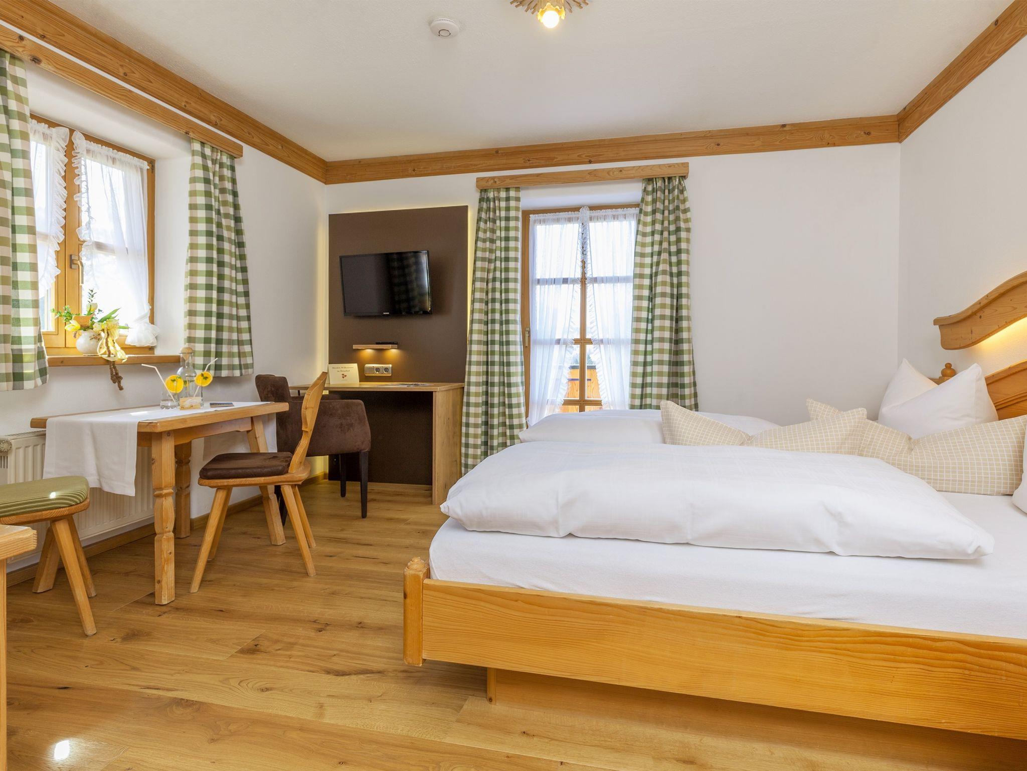 Gemütlich eingerichtetes Eckzimmer mit Balkon und herrlicher Aussicht. Schlafmöglichkeit für das Kind auf einer Ausziehcouch vorhanden.