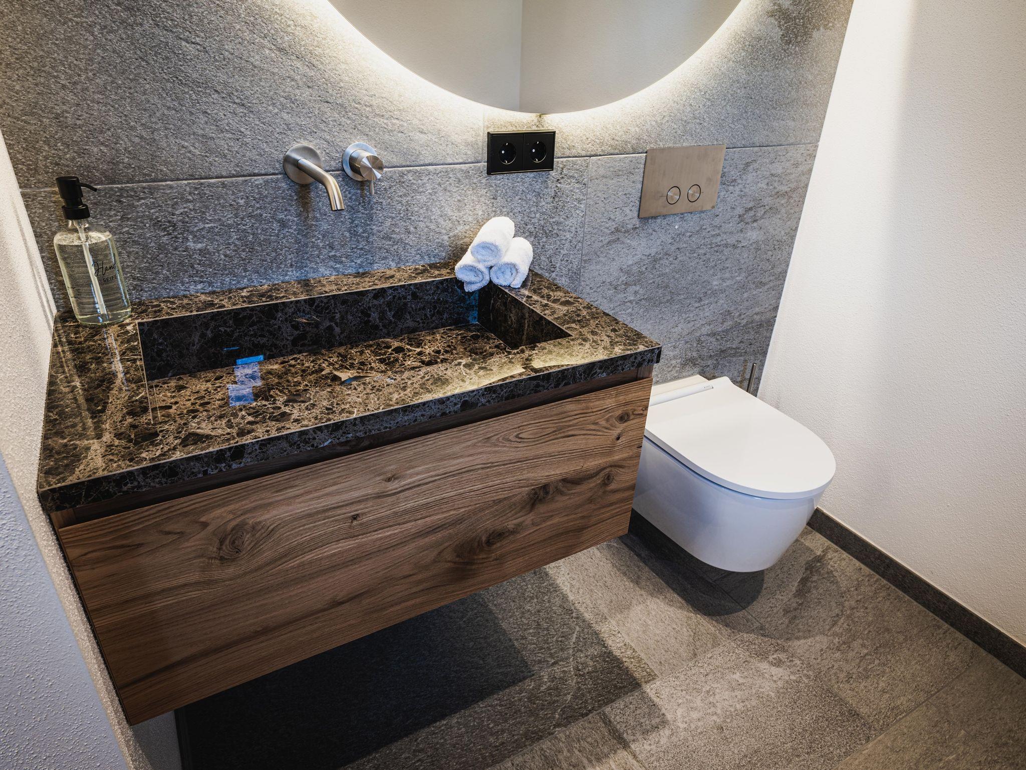 Die Energieversorgung des Chalets weist durch die Nutzung von Geothermie, Photovoltaik und Wasserstoff als Energieträger den Weg in die Zukunft. Eine lokale Hightech-Energiezentrale sorgt für eine fast vollständige Autarkie sowohl bei der Strom- als auch bei der Wärmeversorgung und schont damit nachhaltig unsere Heimat. Aus Gründen der Nachhaltigkeit ist der Außen-Whirlpool in den Wintermonaten von November bis April nicht in Betrieb.