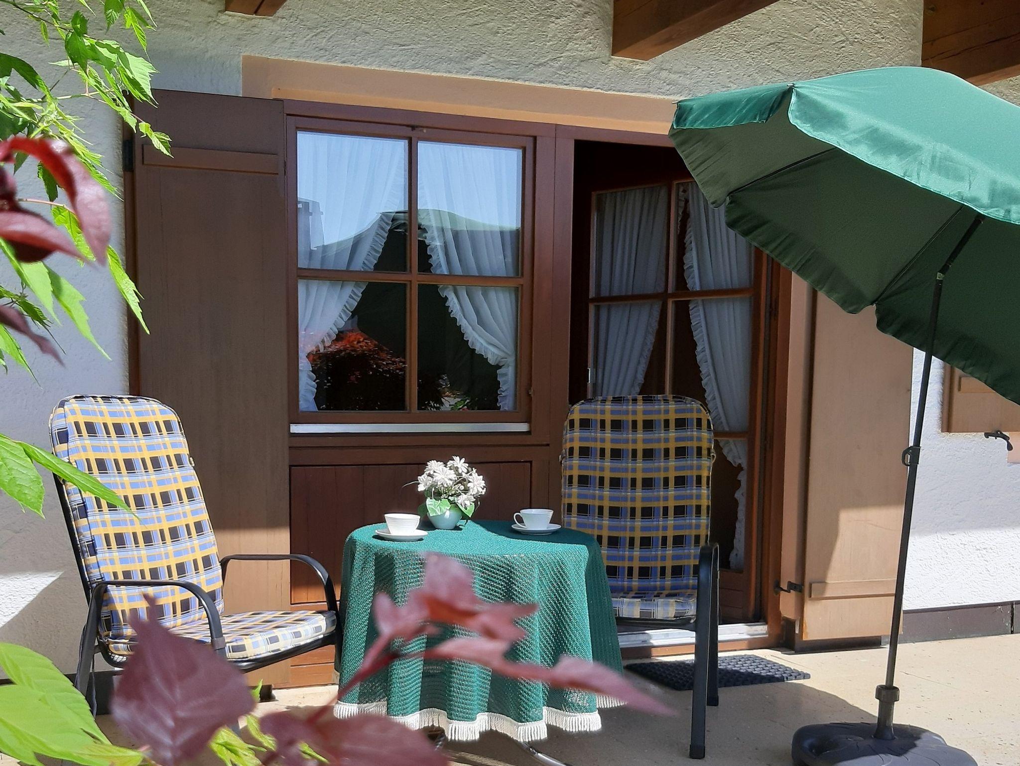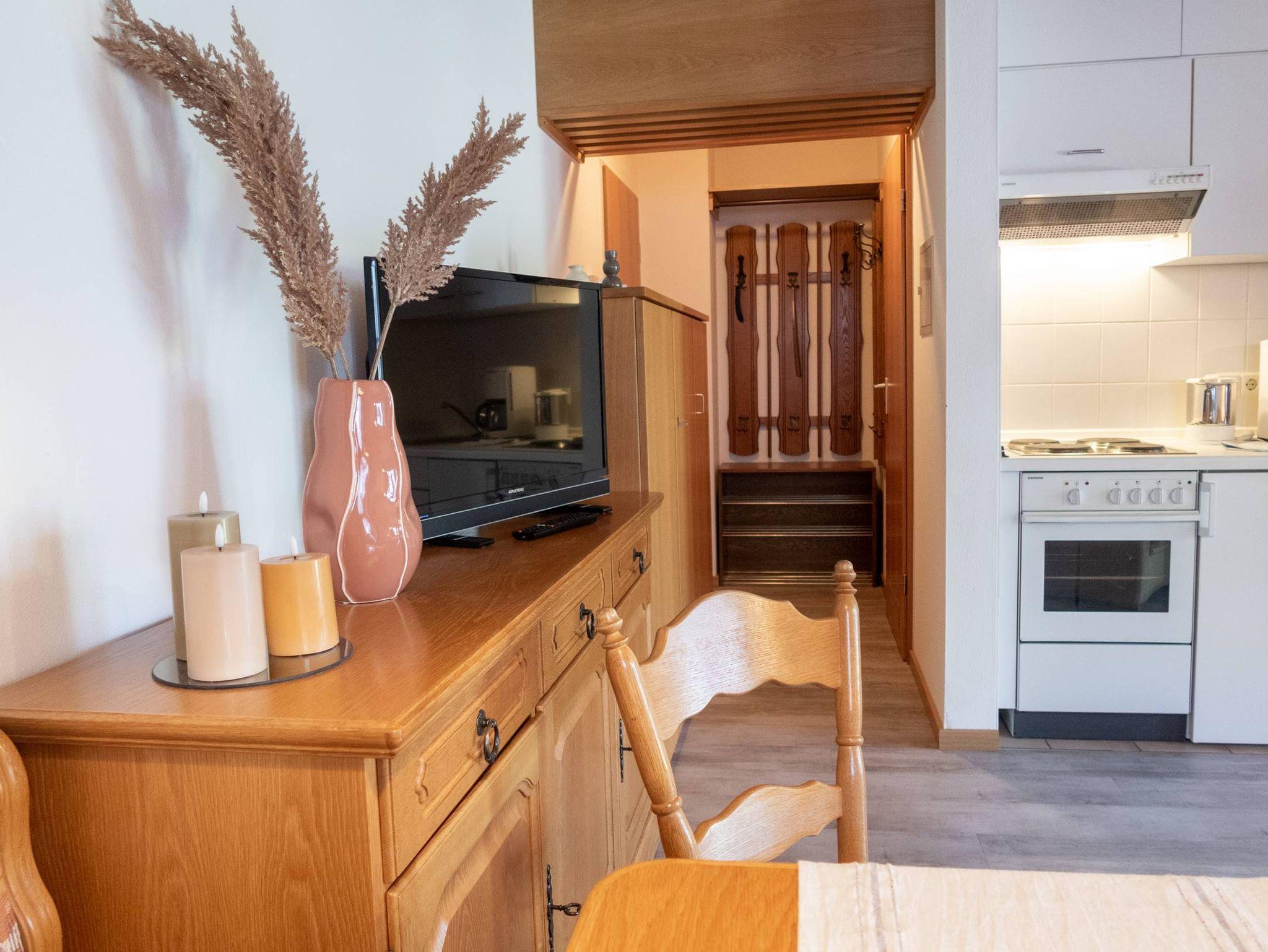 Im Wohnzimmer befindet sich eine große, hochwertige Couchgarnitur mit zwei dazugehörigen Sesseln – Entspannung pur nach einer schönen Wanderung. Flachbild-TV oder Radio sorgen hier für Ihre abendliche Unterhaltung. Von hier haben Sie Zugang zur möblierten West-Terrasse mit Liegewiese, ein wunderbarer Ort für ein Abendessen oder einfach zum Entspannen. Auf der ausziehbaren Couch können zwei Personen schlafen.
