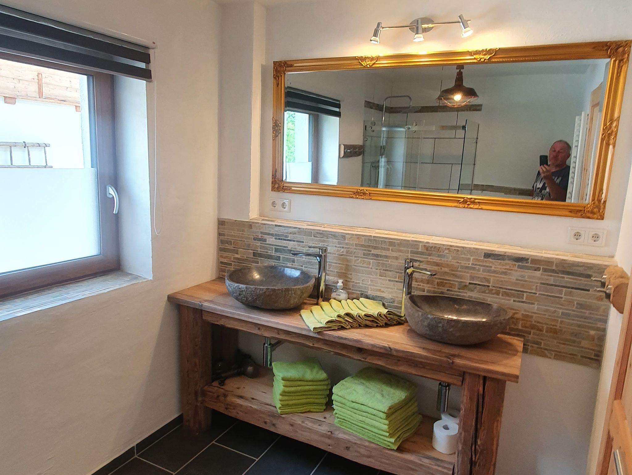 • 2 traumhafte Bäder mit Regenduschen (ein Bad im Obergeschoss und ein Bad im Dachgeschoss)