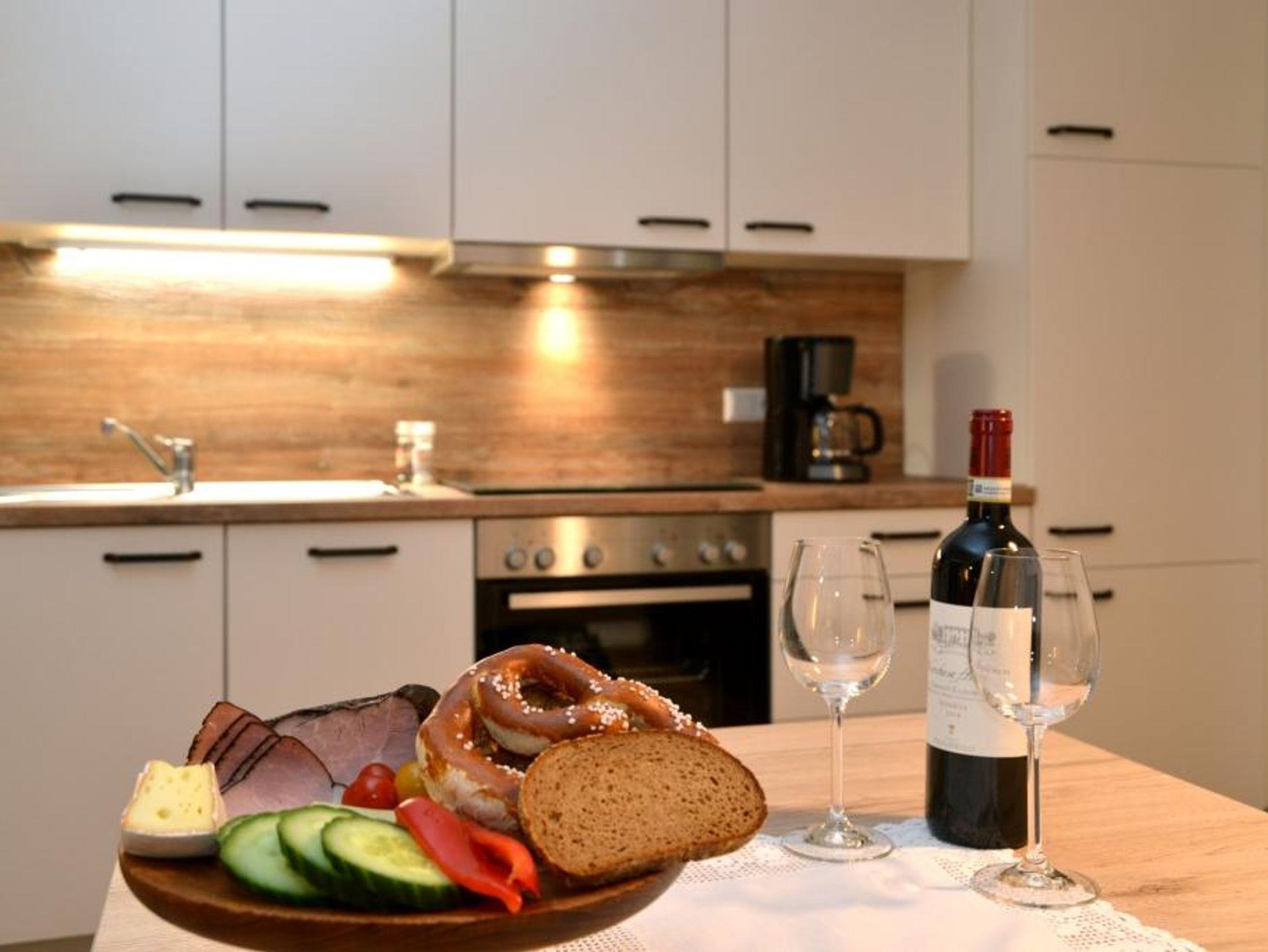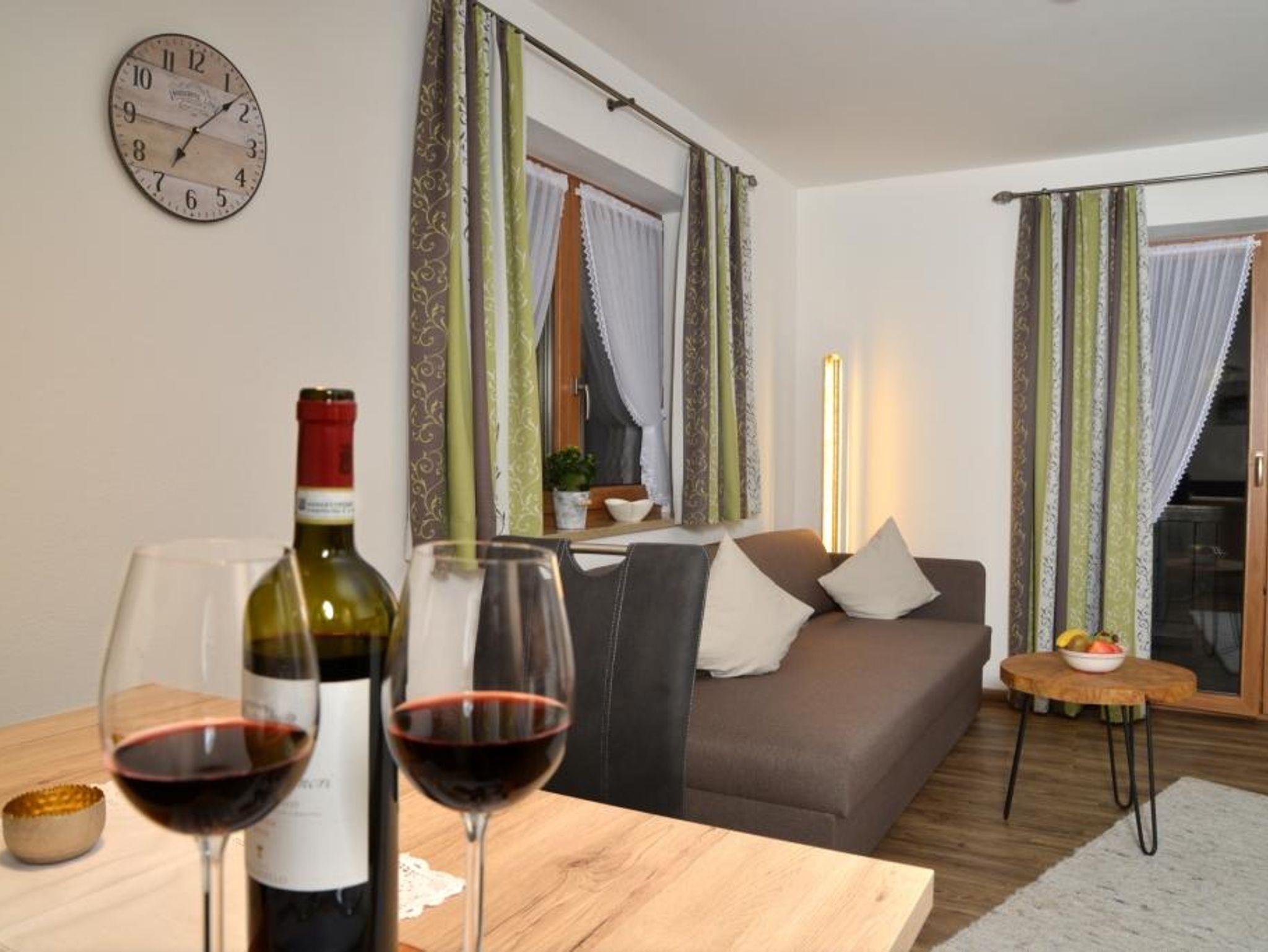 Wir bieten Ihnen 2 komplett, im Dez. 2018, neu angelegte 2-Raum-Ferienwohnungen im Landhausstil für 1-3 Personen. Die Wohnungen sind sehr komfortabel und mit Liebe eingerichtet. Vollausgestattete, moderne Wohnküchen, Sitzecken, und eine hochwertige Couche gehören natürlich auch dazu. Genießen Sie die Sonne und den herrlichen Panoramablick auf dem dazugehörigen, möblierten Balkon. Selbstverständlich steht Ihnen ein eigener Parkplatz sowie kostenloses W-Lan zur Verfügung. Optional verfügen wir auch noch über ein Doppelzimmer, das Sie für die Eltern, Freunde und Bekannte separat dazu buchen können. (ohne Frühstück)