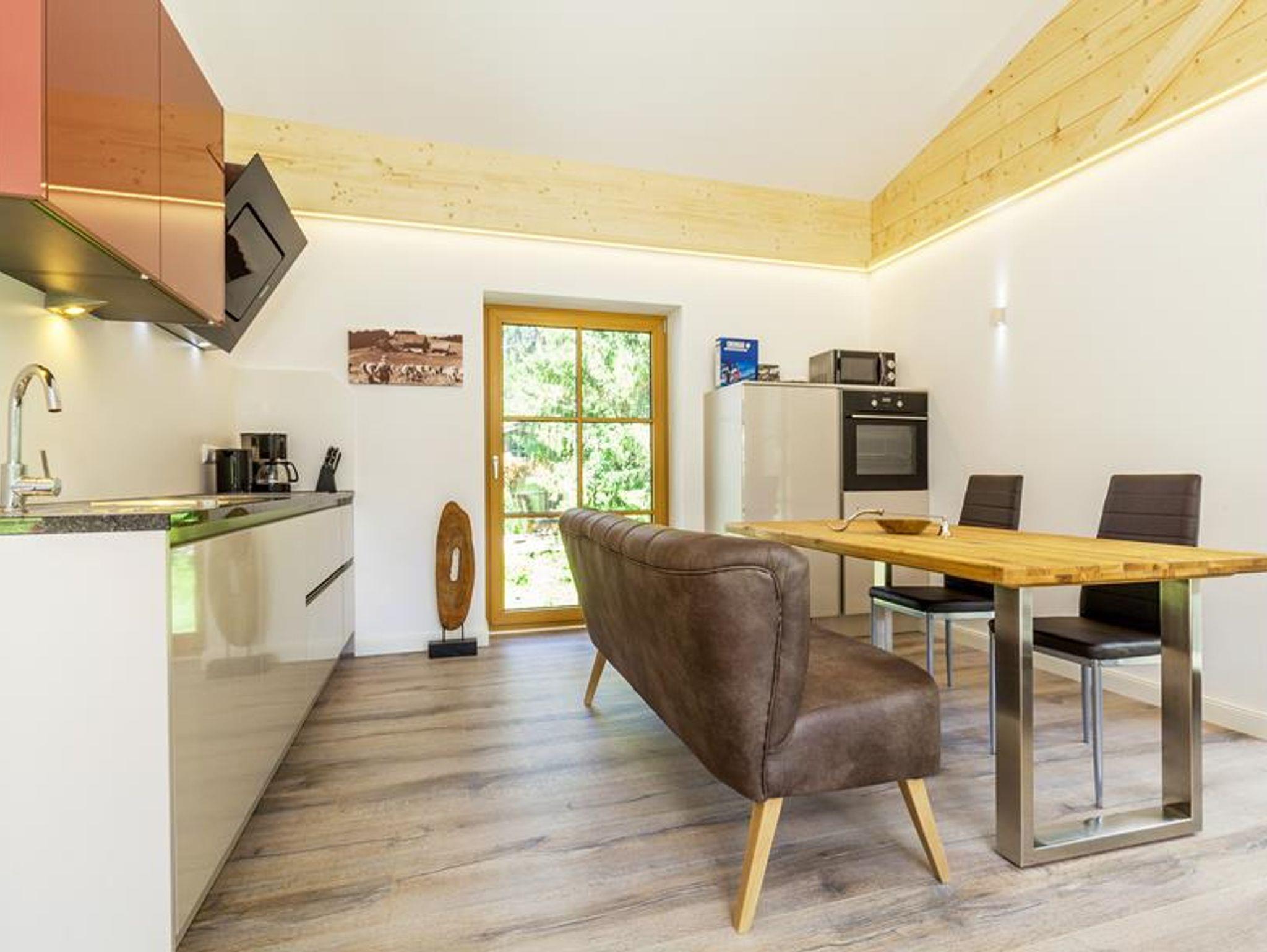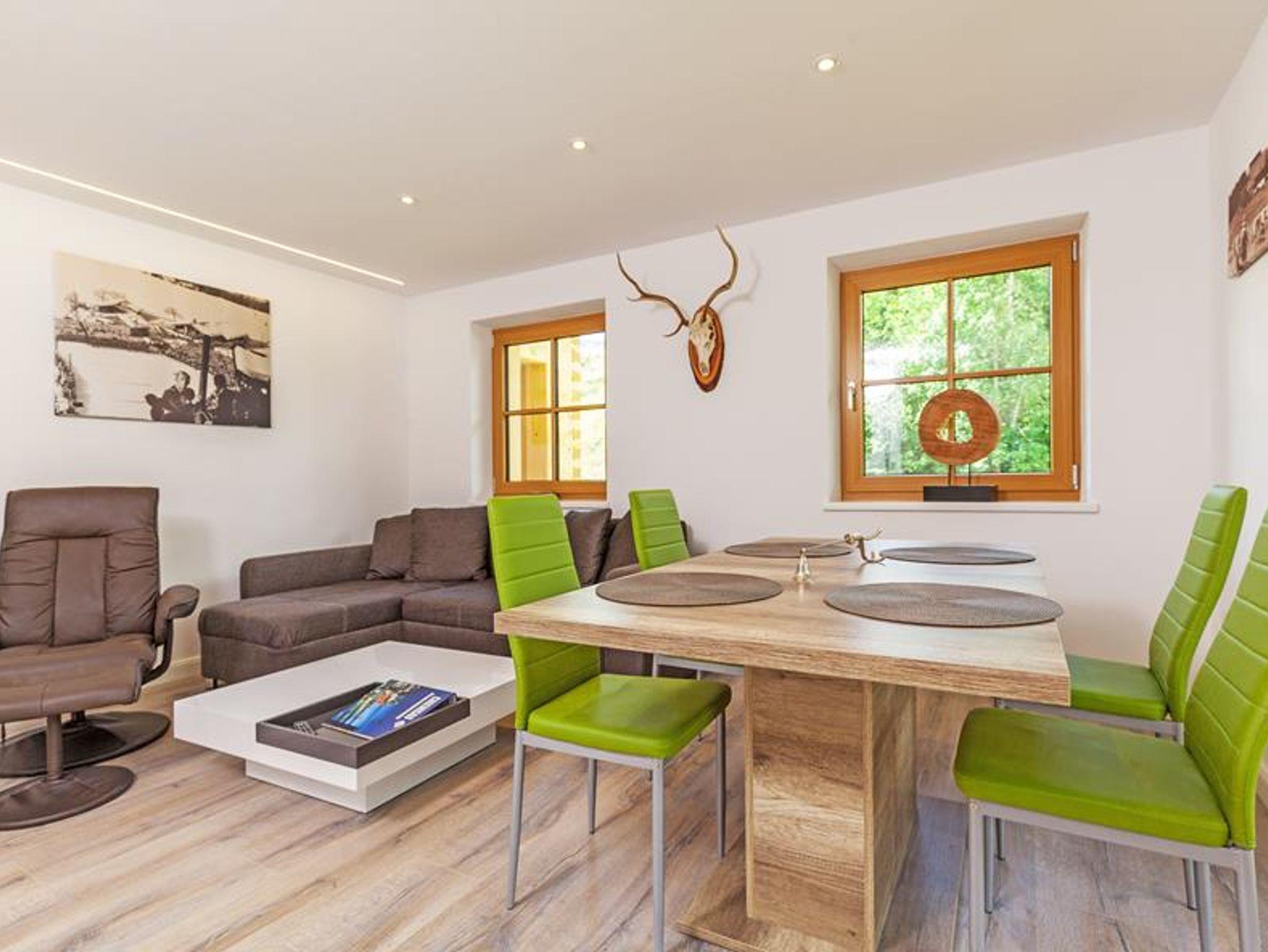 Die lichtdurchfluteten 2-Raum-Wohnungen (für 2 bis 4 Personen) bieten Ihnen alles, was Sie für einen entspannten Urlaub benötigen: ein gemütliches Schlafzimmer, ein Wohnzimmer mit Schlafsofa, eine voll ausgestattete Küchenzeile mit Esstisch, ein modernes Badezimmer und einen großzügigen Balkon, auf dem Sie die frische Bergluft genießen können. Die Wohnung „Steinplatte“ bietet zusätzlich eine Terrasse, und für alle, die das Zusammensein unter freiem Himmel lieben, steht ein Grillplatz zur Verfügung. Ob Wandertour im Sommer oder Skiabenteuer im Winter – hier beginnt Ihr Urlaub direkt vor der Tür.