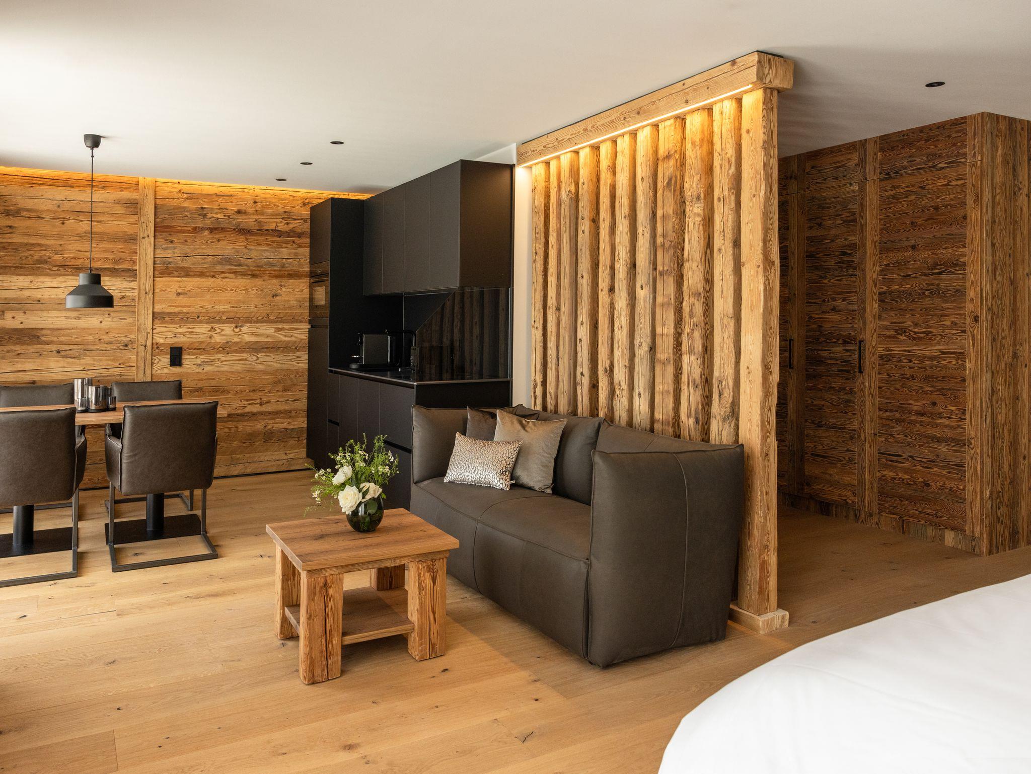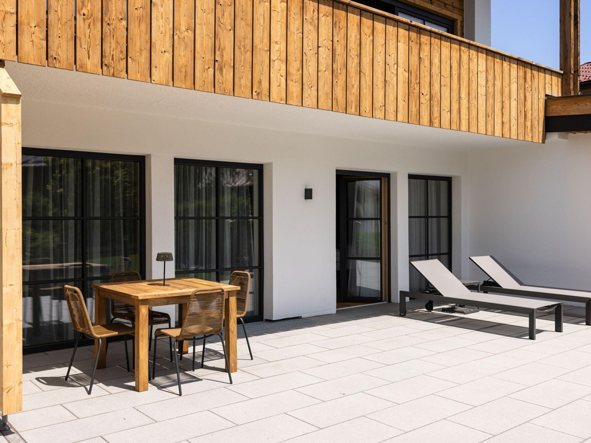 Für alle, die Ruhe mit Stil und Natur mit Komfort verbinden möchten: Sobald Sie Das Denisl betreten, stellt sich ein tiefes Gefühl der Erholung ein. Mitten im Herzen von Reit im Winkl, zentral an der Sonnenloipe, wartet ein neues Apartmenthaus mit 14 stilvollen, hellen Ferienwohnungen voller Flair auf Ihre unvergessliche Zeit im Chiemgau. Viel Altholz, gedeckte Farben, indirekte Beleuchtung, schwarze Armaturen und große Türen zu Balkon oder Terrasse machen Ihre Urlaubstage zu einem echten Design-Erlebnis. Freuen Sie sich auf bestens ausgestattete Küchen, einladende Essbereiche, gemütliche Ledersofas, große Waschtische, kuschelige Boxspringbetten und Regenduschen, die Sie rundum verwöhnen und entspannen lassen. Im Haus zählt der großzügige Aufenthalts- und Eventraum mit 120?m² zu einem beliebten Treffpunkt, um gemütlich zusammenzusitzen, gemeinsam zu feiern oder Tagungen durchzuführen – ausgestattet mit Küche, Theke, Tontechnik, Getränke-/Snackautomat und einer großen Sonnenterrasse mit Blick ins Grüne. Für Aktive Urlauber beginnen direkt vor der Tür idyllische Wanderwege, tolle Biketouren und gepflegte Skiloipen im Winter. Ihre Ausrüstung ist dabei bestens aufgehoben: im großen Skikeller mit Spinden und Skiwerkstatt sowie im Radlhäusl mit Fahrraddusche, Werkstatt und Spinden. Für entspannte Momente sorgt die charmante Sauna im Garten – Ihr Rückzugsort für Körper und Geist. Familien freuen sich über den Spielplatz und das Freibad ganz in der Nähe, aktive Urlauber schätzen schätzen die Haltestelle für den Wanderbus direkt hinter dem Haus. Kostenlose Parkplätze sind in ausreichender Anzahl im Hof vorhanden und wer elektrisch unterwegs ist, findet eine E-Ladestation bei der nahen Tourist-Info.