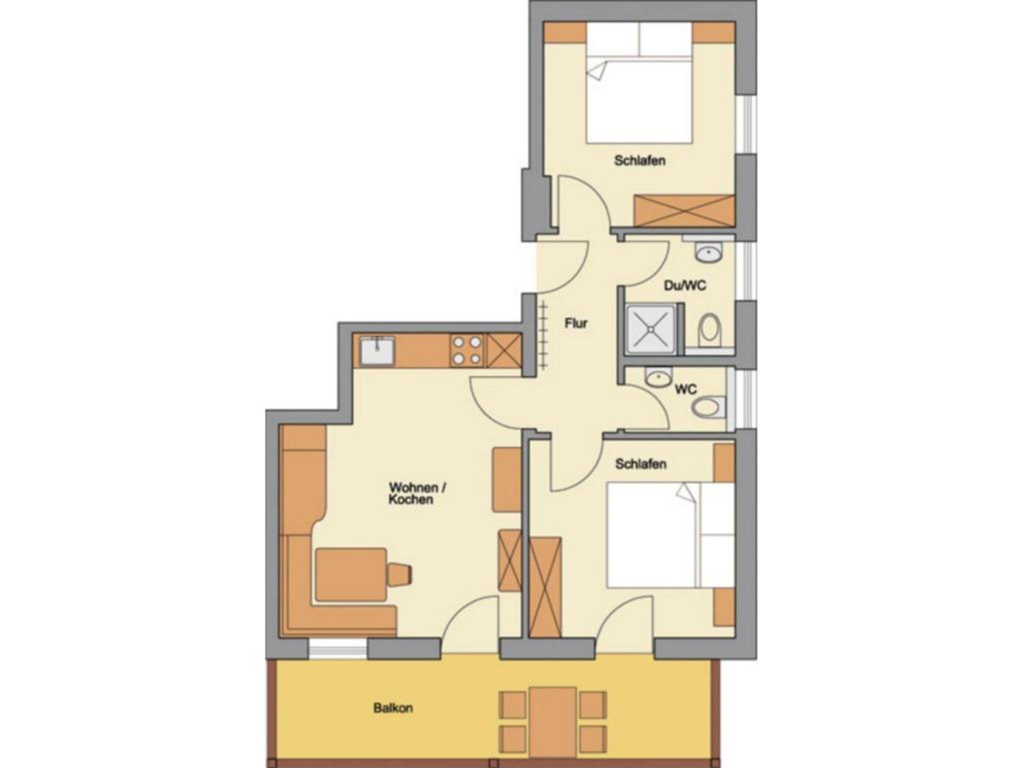 Die großzügige, neu in 2024 renovierte, Drei-Zimmer-Ferienwohnung im 1. OG hat eine Größe von ca. 56m² und verfügt über einen schönen, großen und sonnigen Südbalkon mit herrlichem Bergblick - ausreichend für 4 Personen. In der gemütlich eingerichteten Wohnküche mit Essecke, Sofa, Flachbildschirm und DVD/CD-Player genießen auch Familien mit Kindern Ihren stressfreien Urlaub. Die Küchenzeile ist komplett ausgestattet und verfügt über Geschirrspüler, Backofen, 4-Platten Ceranfeld und Mikrowelle. Kaffeefilter, eine kleine Auswahl an Tee und Gewürzen runden das Angebot ab. Ein zusätzliches WC sorgt für mehr Privatsphäre in der Wohnung. Zudem befinden sich in den Schlafzimmern Massivholzmöbel und der Schlafbereich kann Netz frei geschalten werden, so steht einem erholsamen Schlaf nichts mehr im Wege. Selbstverständlich sind Bett- und Tischwäsche sowie Handtücher ausreichend vorhanden. Genießen Sie einen erholsamen Urlaub bei uns im Haus.