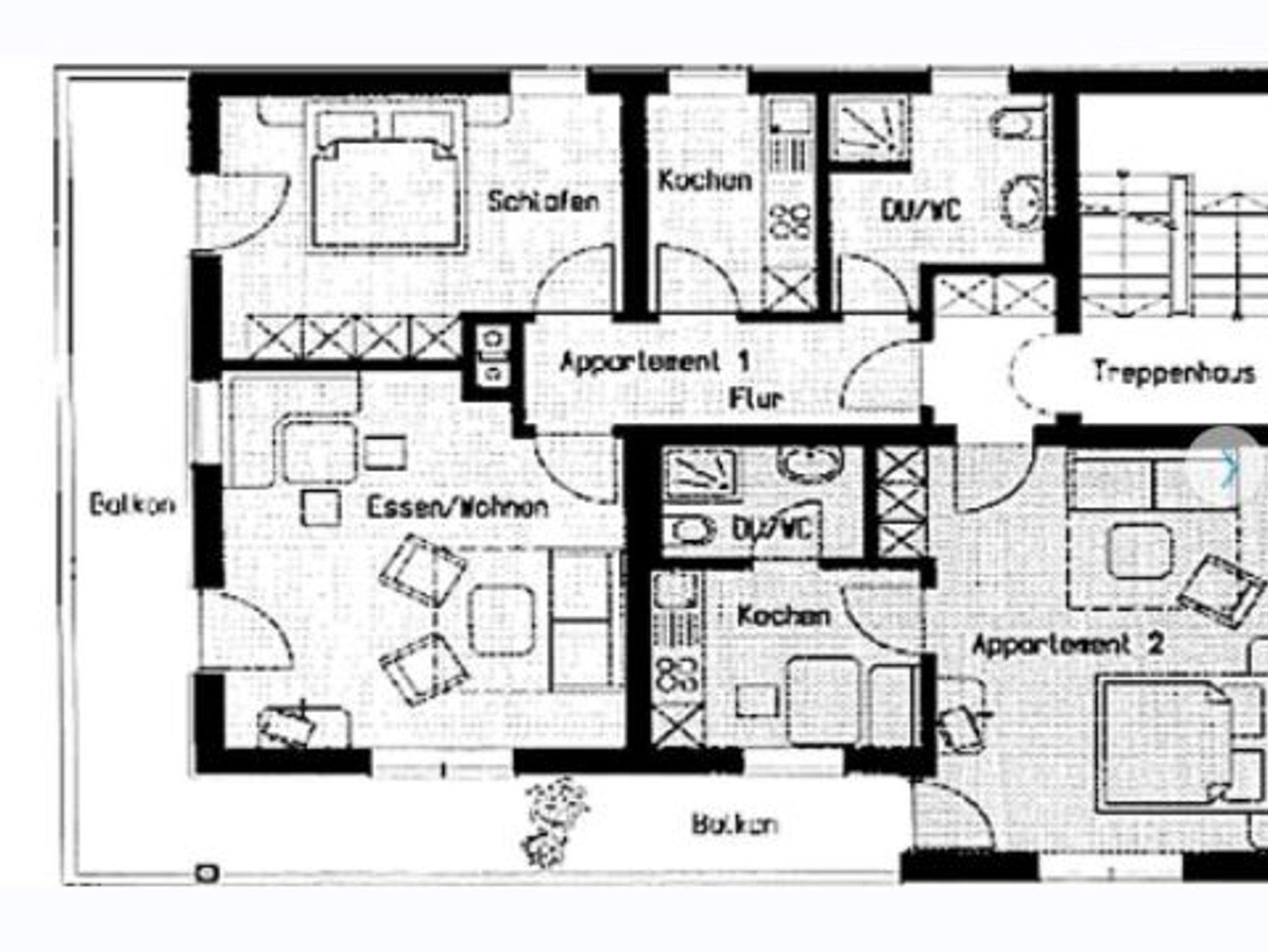 Die gemütliche Einraumwohnung ist 37 qm groß und bietet Platz für 2-3 Personen. Der Wohnraum ist neben einem Doppelbett mit einer ausziehbaren Couchgarnitur möbliert. Die abgetrennte Küche bietet zusätzlich Platz für eine bequeme Sitzecke. Die Wohnung ist in Süd-Ostlage gelegen.