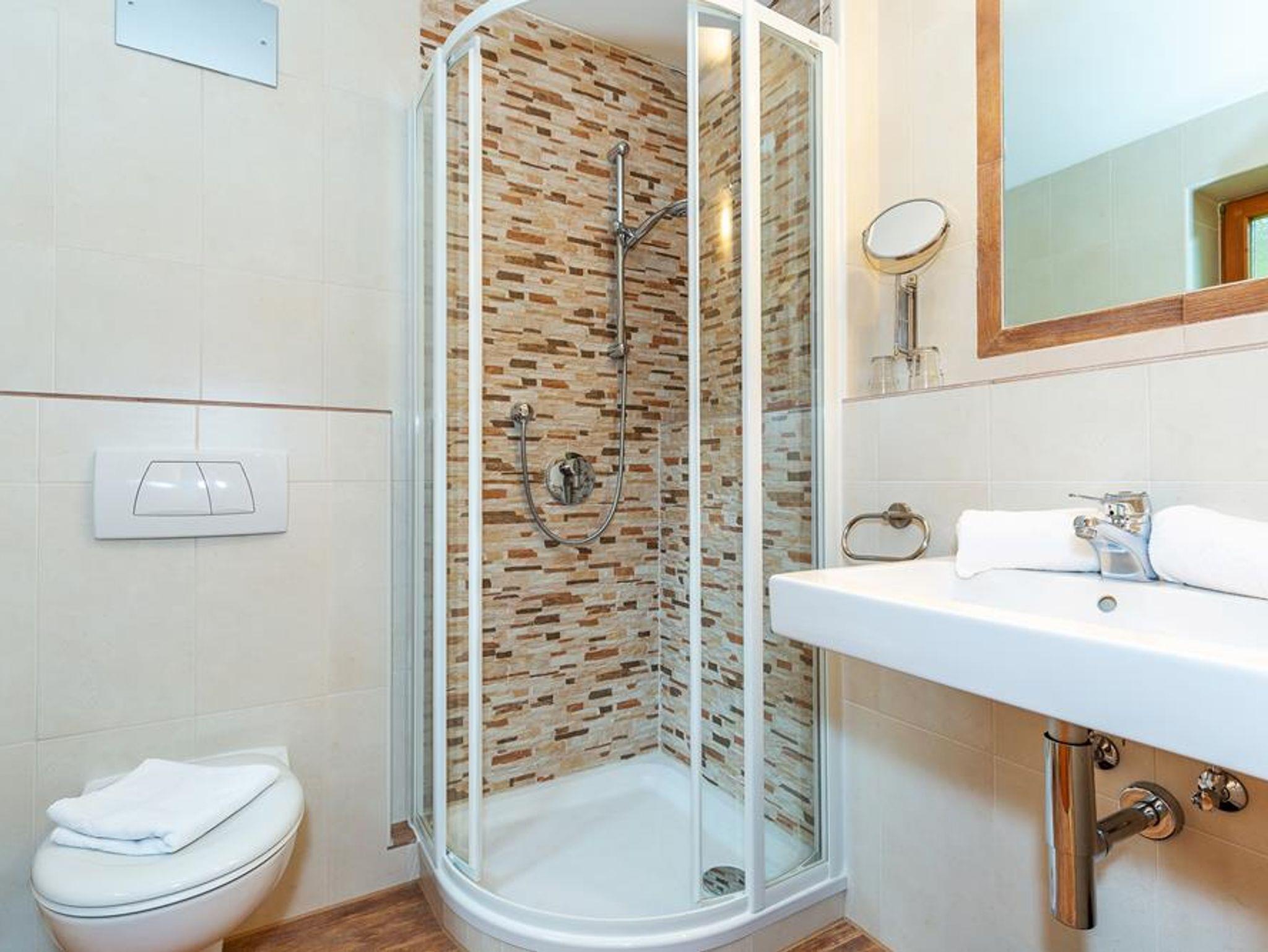 Alle Schlafzimmer verfügen jeweils über ein Doppelbett, sowie Sat-TV-Flachbildschirme. Der geräumige Wohnbereich ist mit viel Liebe zum Detail hochwertig eingerichtet. Entspannen Sie nach einer schönen Wanderung auf der komfortablen Couchgarnitur oder einem der beiden Fernsehsessel. Der eingebaute Kachelofen sorgt gerade im Winter für eine gediegen Stimmung. Der Essbereich punktet mit einem großen Holztisch und hochwertigen Stühlen, sowie mit einer geräumigen Küchenzeile, mit Kühl- und Gefrierschrank, Mikrowelle, Backofen, 4-Platten-Ceranfeld, Geschirrspüler. Hunde sind hier herzlich willkommen. Im Chalet Bergromantik gibt es zwei Bäder, in beiden befindet sich ein WC. Auch eine Waschmaschine mit Wäschetrockner dürfen unsere Gäste gerne benutzen. Des Weiteren bleibt Ihre Winterausrüstung stets trocken – dank Skischuhalter mit Skischuhheizung. Auch Ihr Auto bleibt in der Garage trocken. Auf dem Stellplatz vor der Garage können ein bis zwei PKWs parken.
