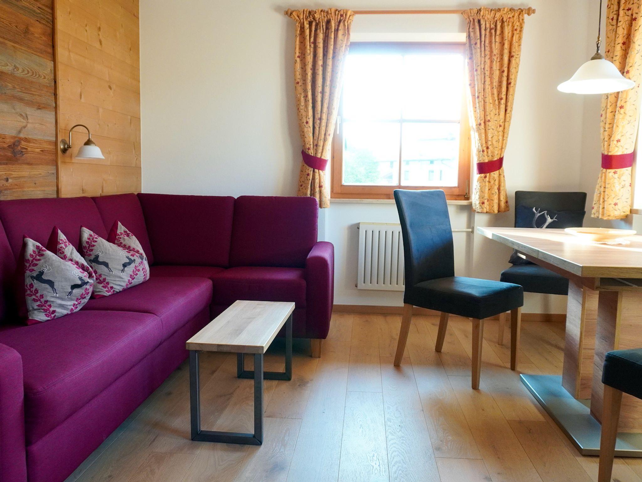 Unsere neu Drei-Raum-Ferienwohnung ist ideal für 1-4 Personen und befindet sich im ersten Stock. Helle Zimmer mit vielen Möbeln aus Holz sorgen für angenehme Wohlfühlatmosphäre während des Urlaubs. Auf dem Balkon können Sie den Blick auf das Kaisergebirge genießen, ein ganz besonderer Anblick.