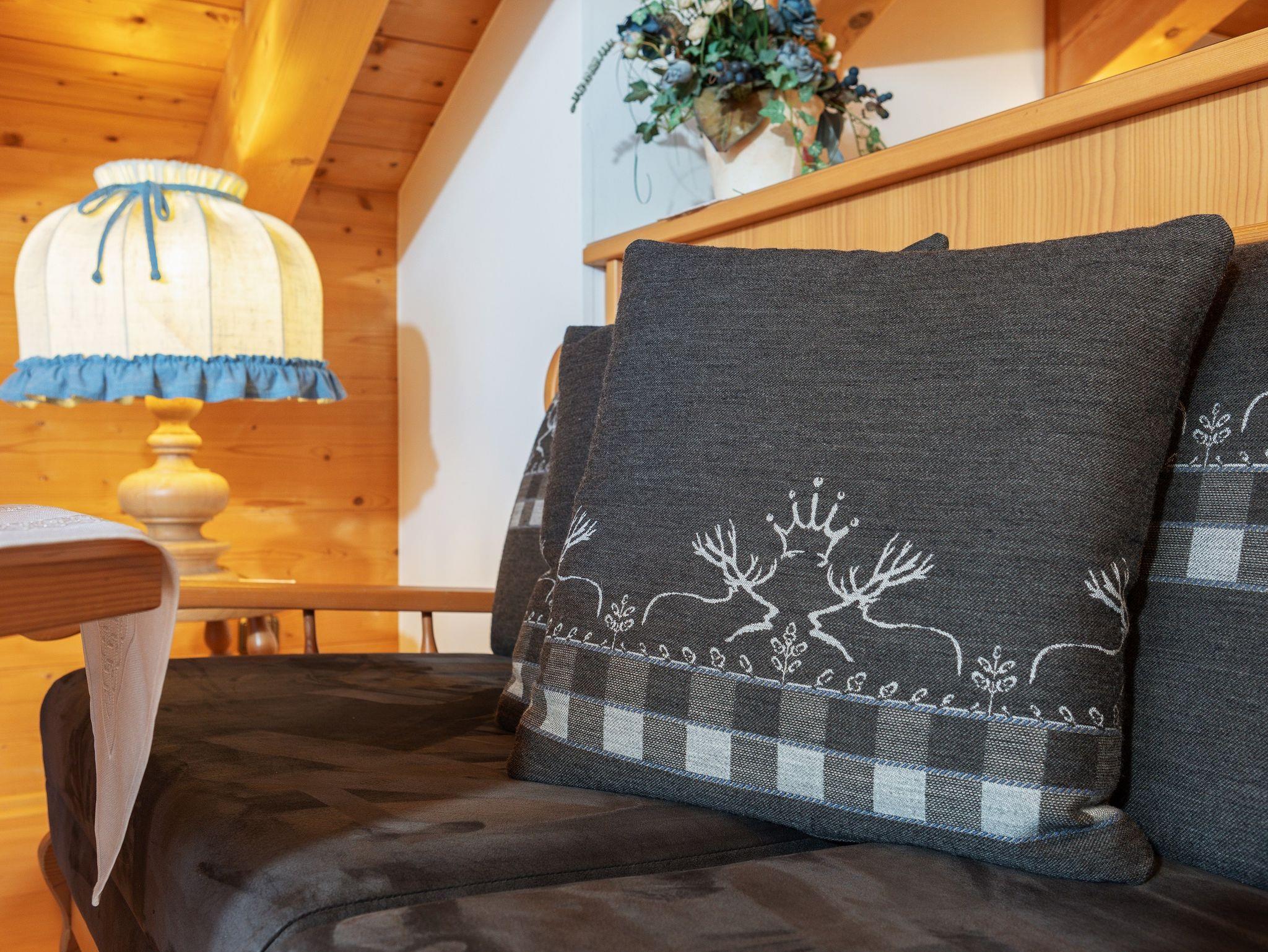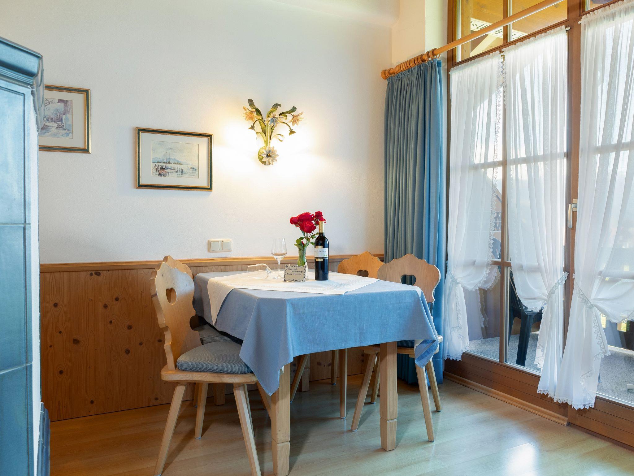 Großer Wohn- Schlafraum, feststehende Betten, Raumteiler mit Sitzgruppe, Kachelofen und Essecke. Abgeschlossene Küche mit Mikrowelle u. Spülmaschine. Badezimmer mit Fenster, Dusche/WC und Waschbecken. Südbalkon mit freien Blick zum Wilden Kaiser.