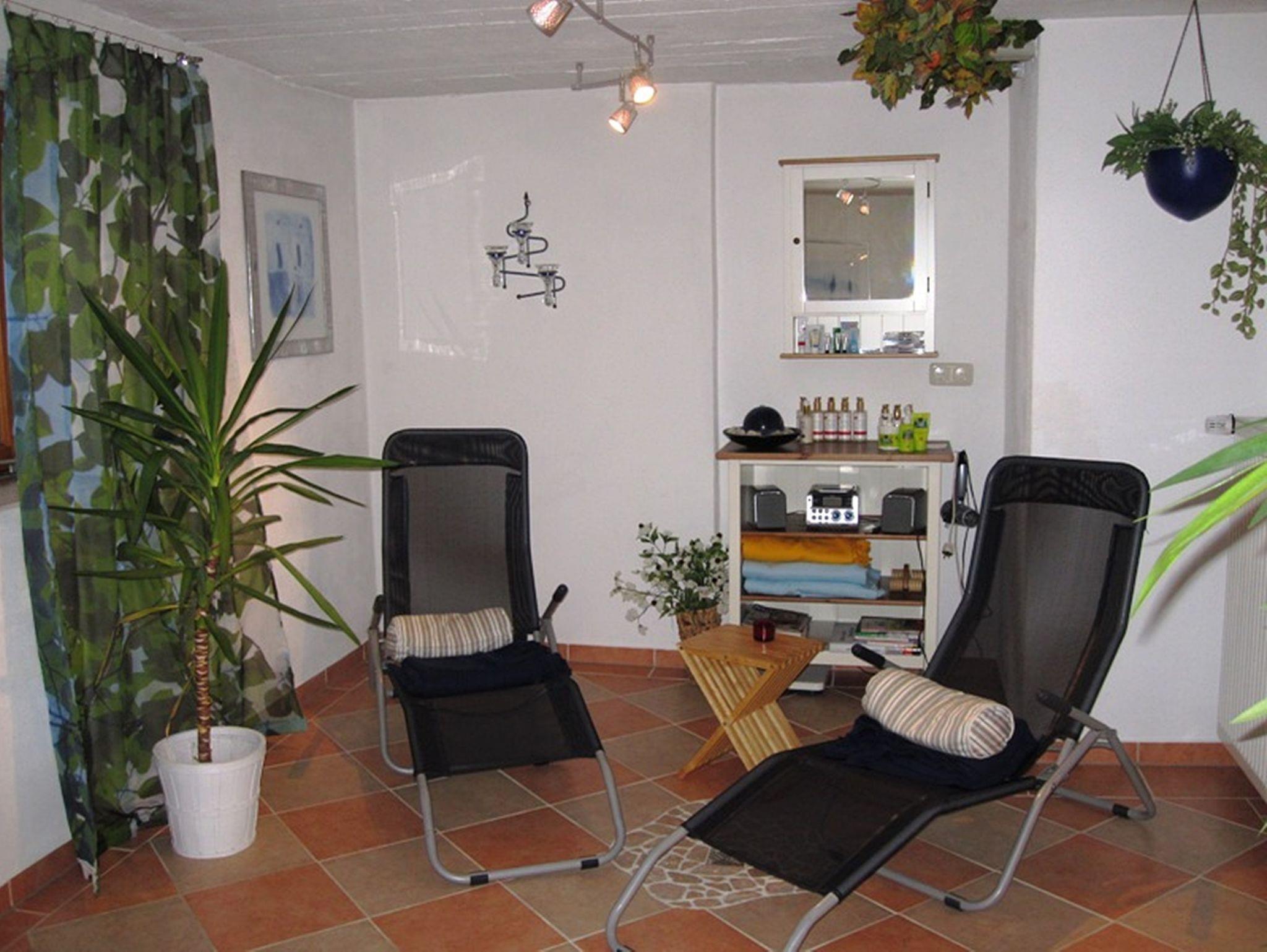 Ferner stehen eine Sauna, ein Solarium, eine große Liegewiese mit Grillplatz, ein kleiner Spielplatz mit Rutsche, Schaukel steht zur Verfügung. (Sauna- und Solarium-Nutzung gegen eine geringe Gebühr)