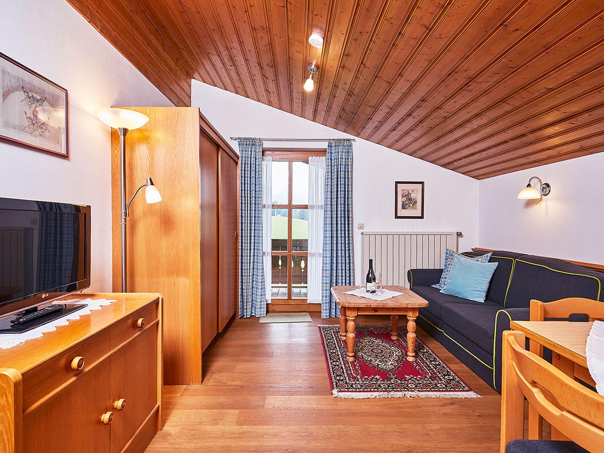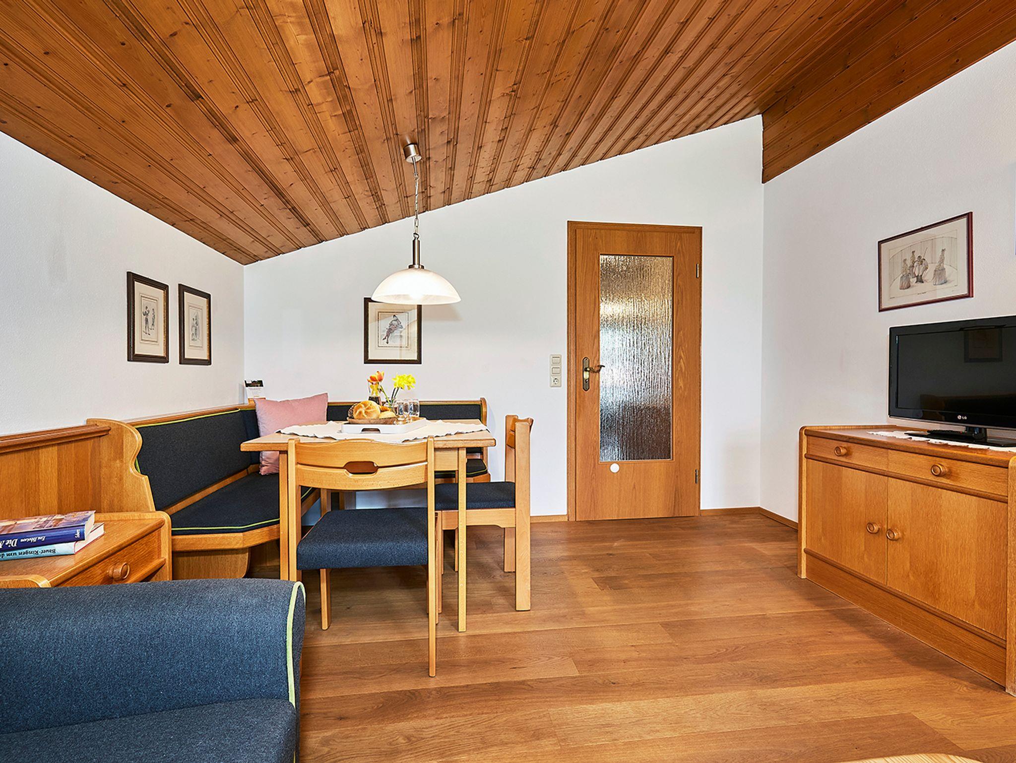 Großzügige und gemütlich eingerichtete Zwei-Raum-Ferienwohnung, ca. 42 qm im 2. OG. Großer Balkon mit Holzmöbeln und freier Blick auf Kaisergebirge und Langlaufstadion. Neue, komplett ausgestattete Einbauküche mit Mikrowelle. Allergikergerecht, mit Echtholzparkett ausgelegt. Bett- und Tischwäsche, sowie Handtücher sind ausreichend vorhanden. Kabel TV, Radio. WLAN kostenlos.