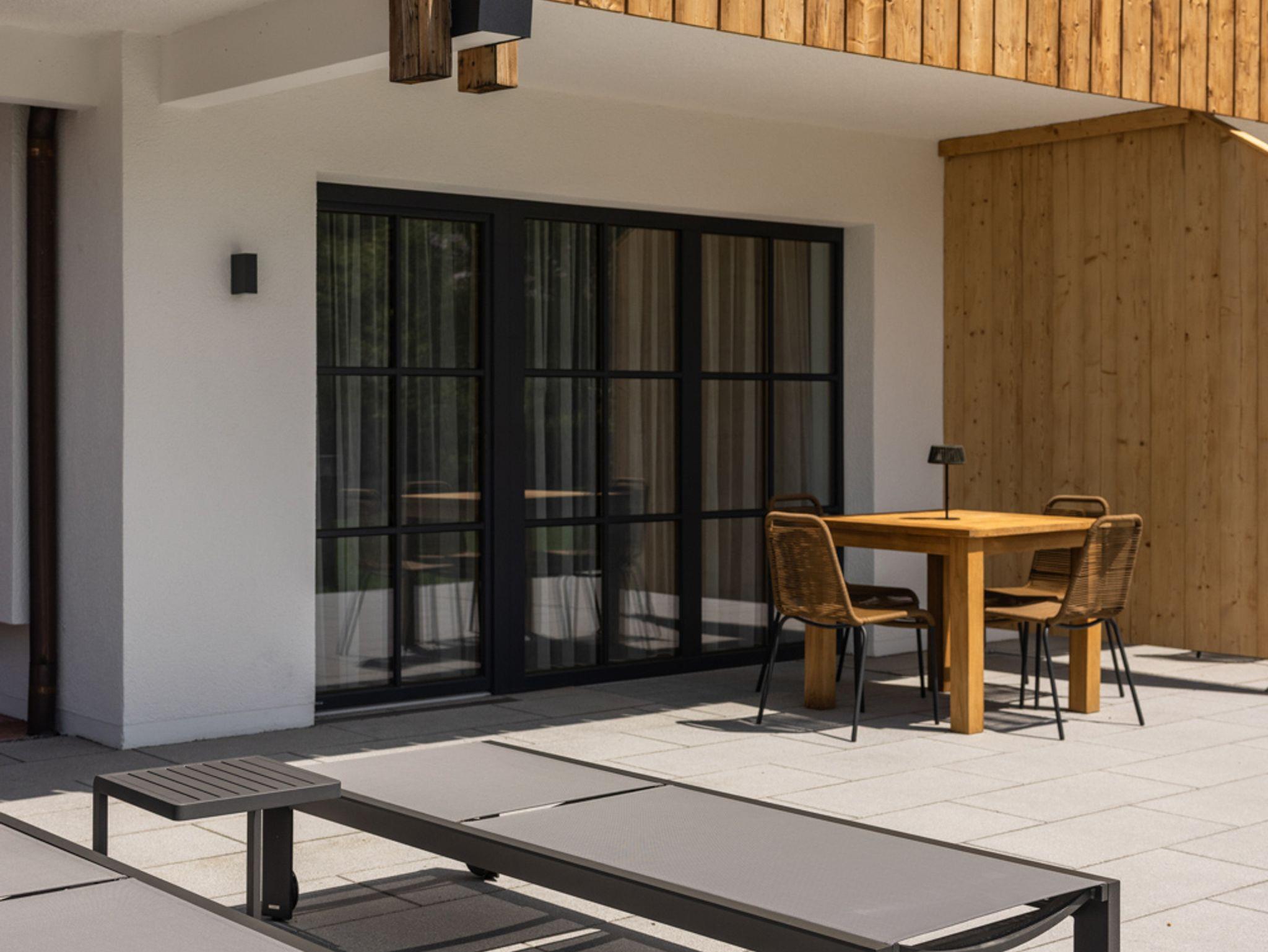 Für alle, die Ruhe mit Stil und Natur mit Komfort verbinden möchten: Sobald Sie Das Denisl betreten, stellt sich ein tiefes Gefühl der Erholung ein. Mitten im Herzen von Reit im Winkl, zentral an der Sonnenloipe, wartet ein neues Apartmenthaus mit 14 stilvollen, hellen Ferienwohnungen voller Flair auf Ihre unvergessliche Zeit im Chiemgau. Viel Altholz, gedeckte Farben, indirekte Beleuchtung, schwarze Armaturen und große Türen zu Balkon oder Terrasse machen Ihre Urlaubstage zu einem echten Design-Erlebnis. Freuen Sie sich auf bestens ausgestattete Küchen, einladende Essbereiche, gemütliche Ledersofas, große Waschtische, kuschelige Boxspringbetten und Regenduschen, die Sie rundum verwöhnen und entspannen lassen. Im Haus zählt der großzügige Aufenthalts- und Eventraum mit 120?m² zu einem beliebten Treffpunkt, um gemütlich zusammenzusitzen, gemeinsam zu feiern oder Tagungen durchzuführen – ausgestattet mit Küche, Theke, Tontechnik, Getränke-/Snackautomat und einer großen Sonnenterrasse mit Blick ins Grüne. Für Aktive Urlauber beginnen direkt vor der Tür idyllische Wanderwege, tolle Biketouren und gepflegte Skiloipen im Winter. Ihre Ausrüstung ist dabei bestens aufgehoben: im großen Skikeller mit Spinden und Skiwerkstatt sowie im Radlhäusl mit Fahrraddusche, Werkstatt und Spinden. Für entspannte Momente sorgt die charmante Sauna im Garten – Ihr Rückzugsort für Körper und Geist. Familien freuen sich über den Spielplatz und das Freibad ganz in der Nähe, aktive Urlauber schätzen schätzen die Haltestelle für den Wanderbus direkt hinter dem Haus. Kostenlose Parkplätze sind in ausreichender Anzahl im Hof vorhanden und wer elektrisch unterwegs ist, findet eine E-Ladestation bei der nahen Tourist-Info.