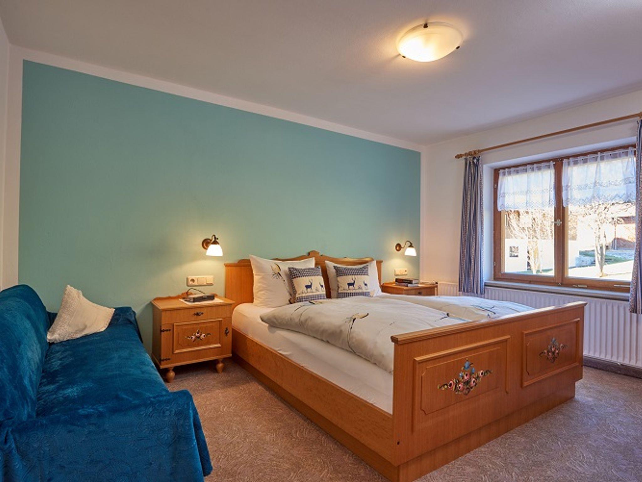 Unsere liebevoll eingerichteten Doppelzimmer, im alpenländischen Stil mit Ausziehsofa, Essecke, 32 Zoll LCD - Fernseher, W-LAN.