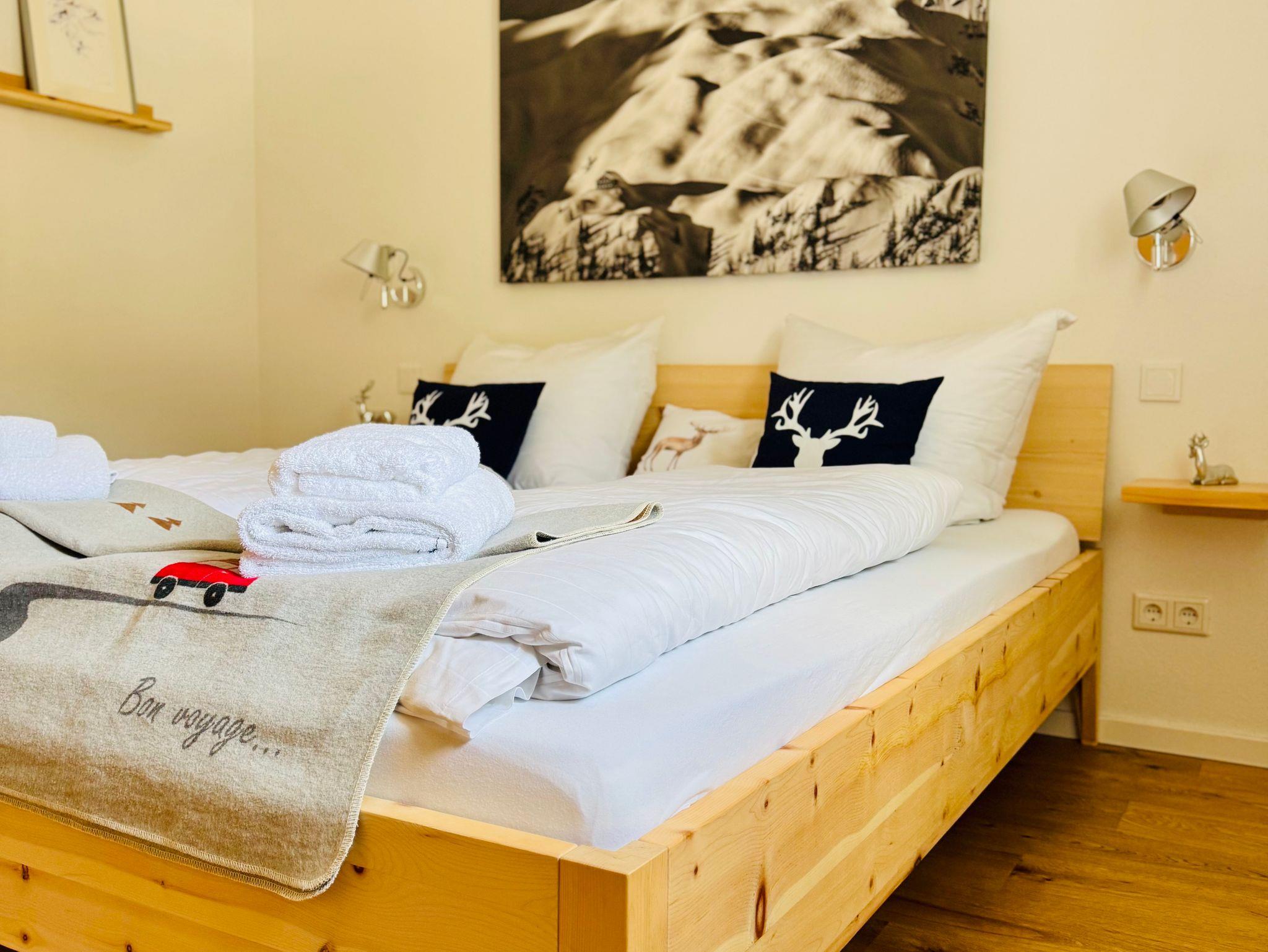 Ferdis Lodge ist eine helle freundliche 110qm Neubauwohnung. Sie verfügt über ein großes Wohnzimmer mit offener, voll ausgestatteter Küche und Essbereich, 1 Badezimmer mit WC und Badewanne , 1 separater Dusche mit WC , 2 Schlafzimmer mit Doppelbetten (180 x 200 m) und 1 Bettcouch im Wohnzimmer. Babybett und Hochstuhl sind vorhanden. Von der Wohnung gelangt man direkt auf die Terrasse mit Bergblick.