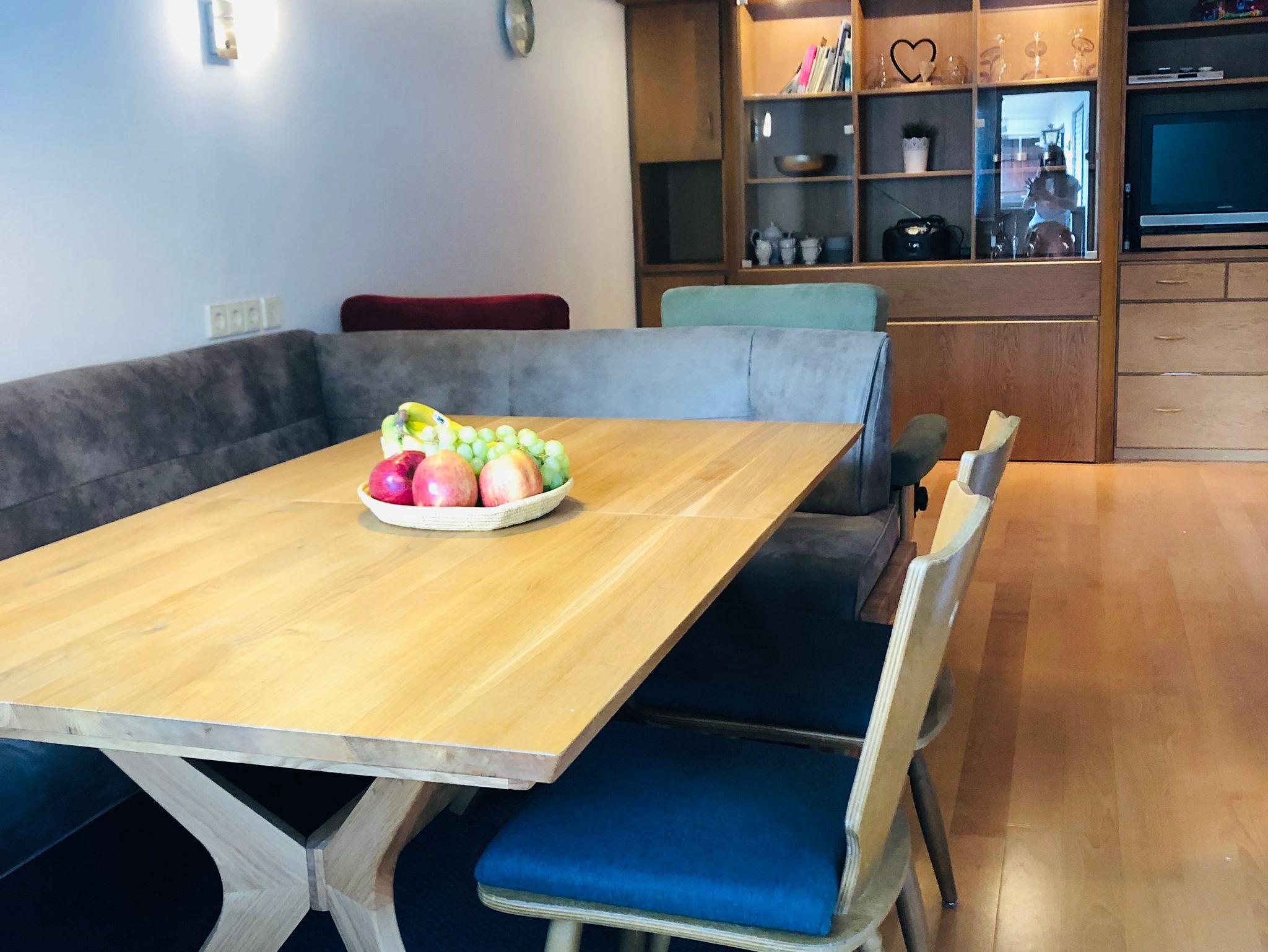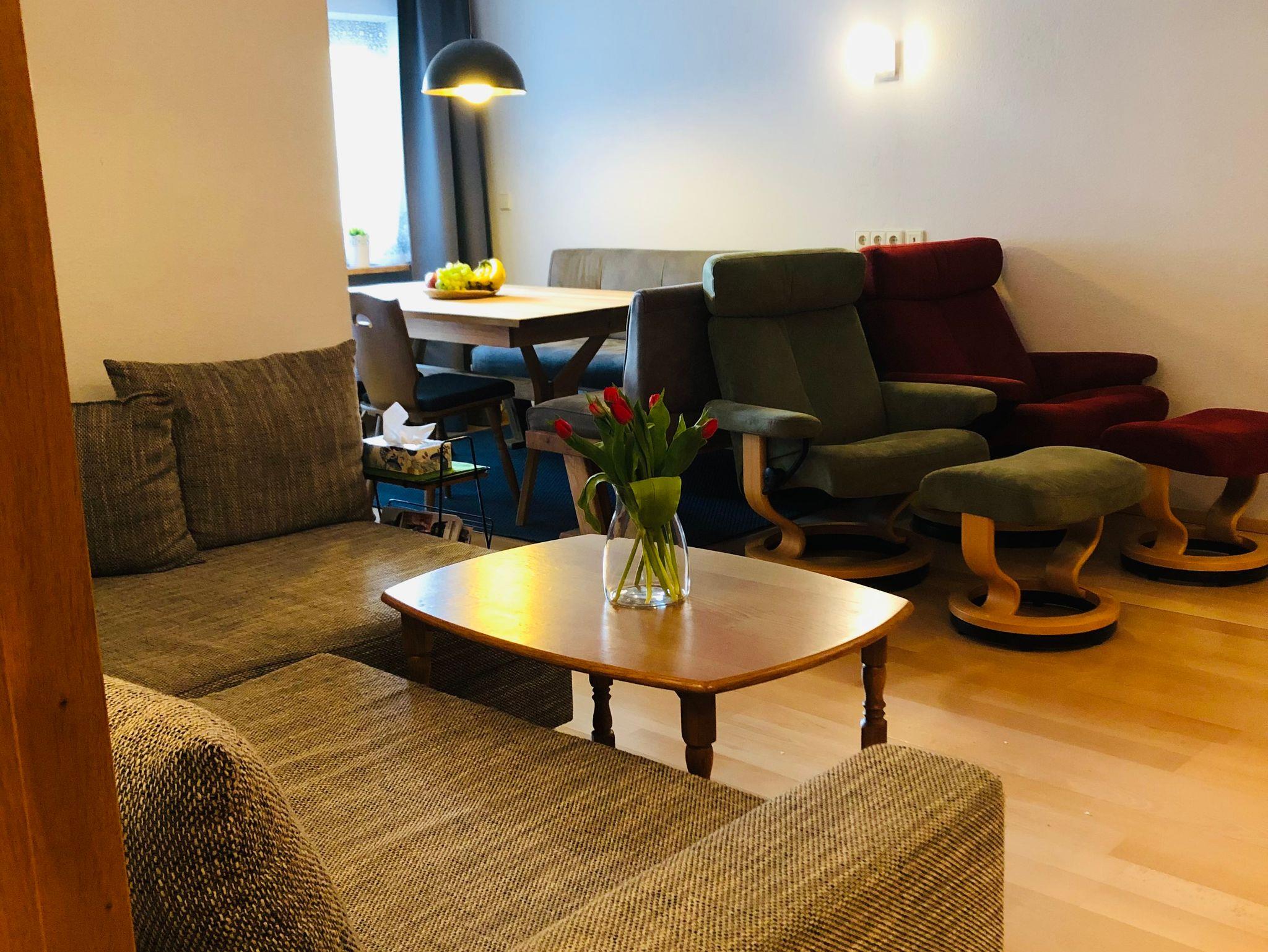 Liebevoll eingerichtete Ferienwohnung mit allem was Sie in Ihrem Urlaub zum enstpannen brauchen. Frühstücken Sie auf dem Balkon und genießen Sie die Ruhe der Natur und das sanfte Rauschen der Lofer. Nach einem der verschiedenen Ausflüge lassen Sie den Tag bei gemütlichem Kerzenschein auf dem Sofa ausklingen. Die Ferienwohnung verfügt über eine schönes Schlafzimmer mit großem Doppelbett, über einen Flachbildschirm (Smart TV), kleinem Schreibtisch sowie genügend Platz und Stauraum für alles was Sie in Ihrem Urlaub brauchen. Im Wohnraum gibt es weitere Übernachtungsmöglichkeiten, entweder über ein elektrisch herrausfahrbares französisches Doppelbett, oder Sie nutzen das bequeme Sofa mit Schlaffunktion. Ein Parkplatz direkt vor der Tür, sowie ein Ski/Schlitten Keller stehen unseren Gästen frei zur Verfügung.