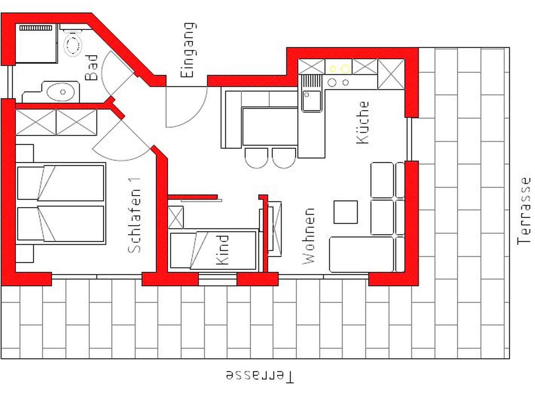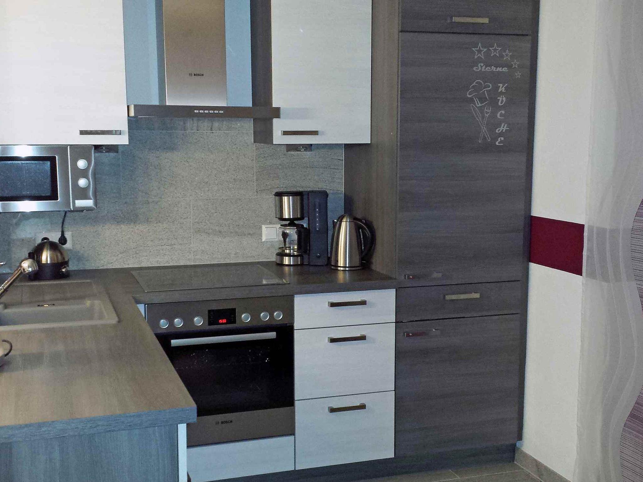 Wir bieten Ihnen einen entspannten Urlaub in unserer ca. 45m² großen modernen Wohnung. Unser Appartment bietet Platz für 4 Personen, bei Bedarf besteht die Möglichkeit im Wohnbereich einem weiteren Gast einen Schlafplatz zu bieten. Für das perfekte Schlaferlebnis ist unser Schlafzimmer mit einem Boxspringbett 1,80x2,00m ausgestattet. Ihre Kids haben bei uns ihr eigenes kleines Reich mit einem Etagenbett 0,90x2,00m und einem kleinen LED Fernseher. Das hochwertige Leder - Ecksofa lädt zum gemütlichen Verweilen ein, der 40Zoll LED Fernseher macht den Wohnbereich perfekt. Die Essgruppe mit einer modernen Eckbank und 2 Stühlen bietet Platz für fünf Personen. Die komfortable, exklusiv ausgestattete Küche mit Spülmaschine, 4-Platten Ceran Herd, Backofen, Mikrowelle, Kühlschrank, usw. lässt keine Wünsche offen. W-LAN, Telefon und die Benutzung der Waschmaschine und des Trockners sind bei uns kostenlos.