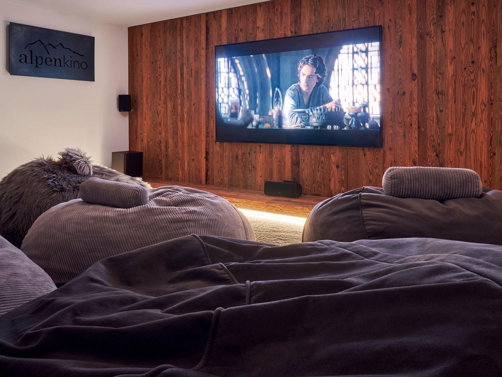 Für unvergessliche Filmabende steht Ihnen unser Alpenkino zur Verfügung, in dem Sie Ihren Lieblingsfilm auf einer großen Leinwand mit Dolby Surround Sound erleben können (eigene Zugangsdaten erforderlich, Provider sind vorinstalliert). Tauchen Sie ein in die einzigartige Atmosphäre unseres Chalets und erleben Sie einen unvergesslichen Aufenthalt im Herzen des Chiemgaus.