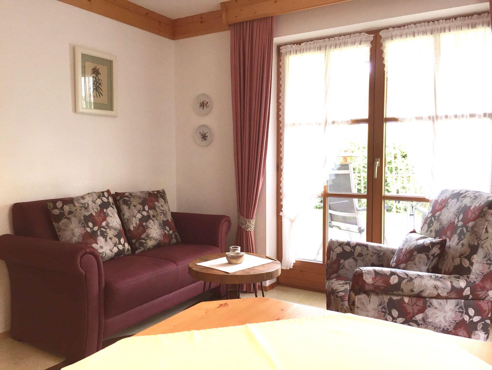 Haus am Wiesbach, Ferienwohnung Alpenrose 36qm mit Terrasse, 1 separates Schlafzimmer