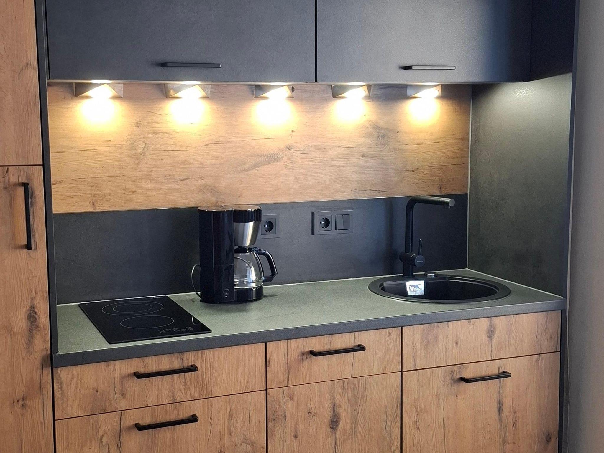 Die Ferienwohnung ist 35 qm groß und besteht aus Wohnzimmer mit integrierter Küchenzeile, Schlafzimmer mit Doppelbett und Bad mit Badewanne. Der 7 qm große Westbalkon lädt zum gemütlichen Aufenthalt ein.