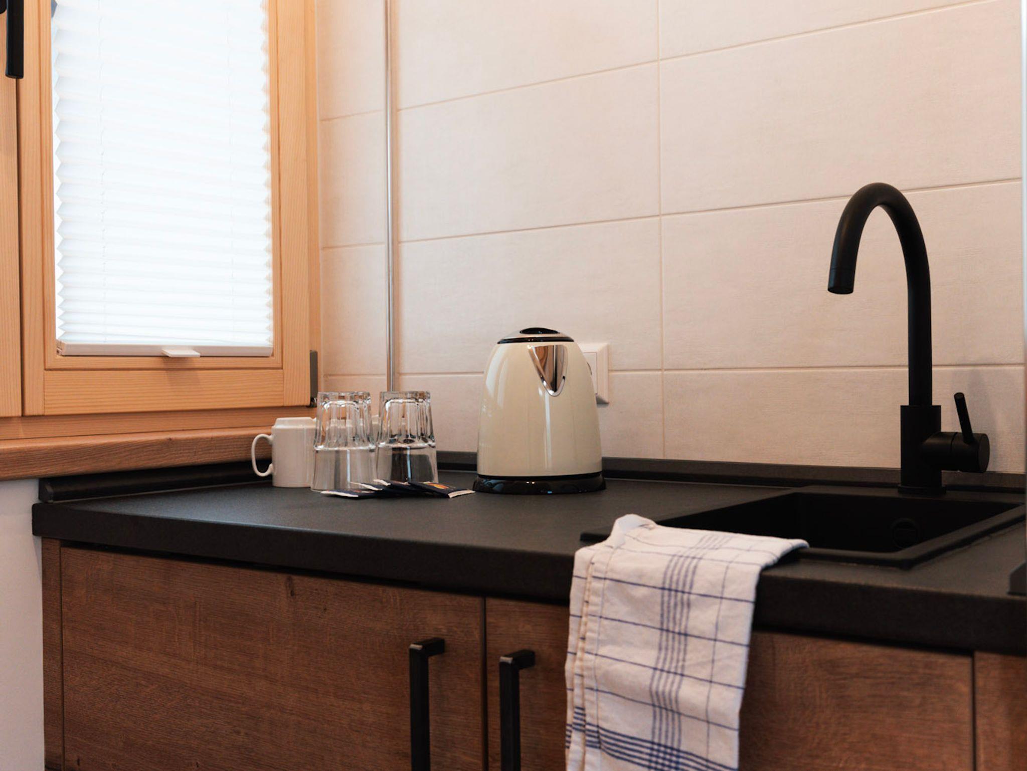 Das Doppelzimmer hat eine Grösse von ca. 35 qm, neben dem Schlafraum befindet sich das Bad (Dusche, Waschbecken und WC) getrennt durch eine Glasschiebetüre mit Sichtschutz. Im Nebenraum befindet sich die Infrarotkabine, Sitzmöglichkeit sowie ein kleiner Küchenservicepunkt mit Kühlschrank und Spüle. Das Zimmer liegt an der Südwestseite.