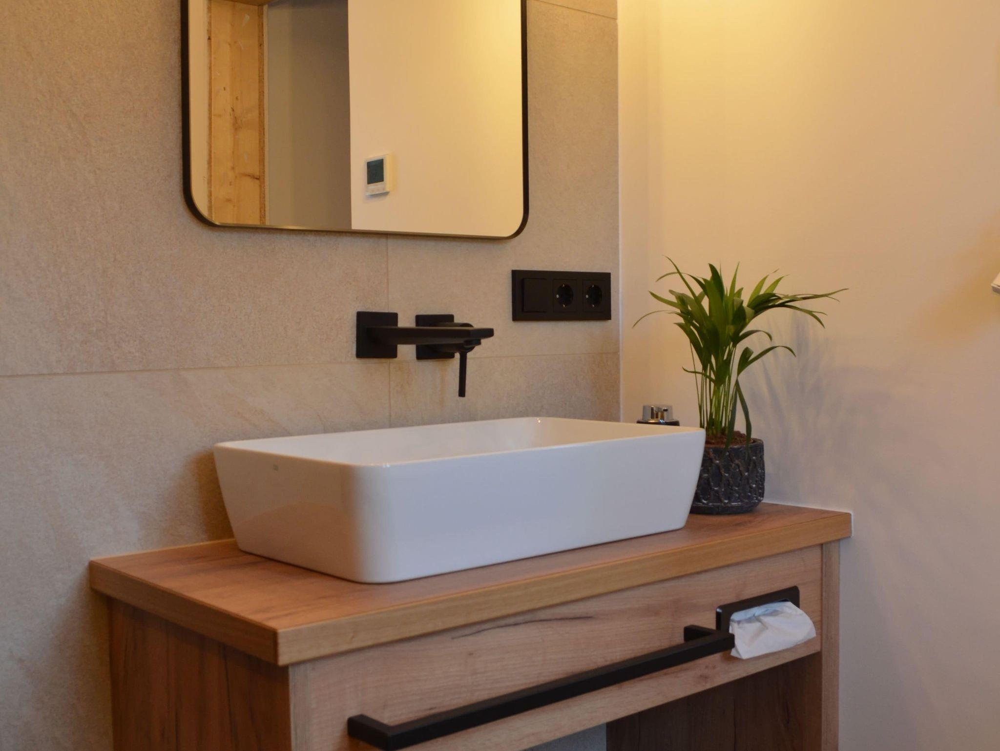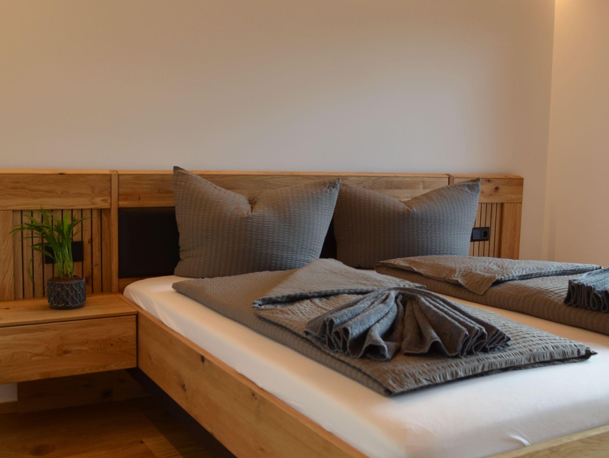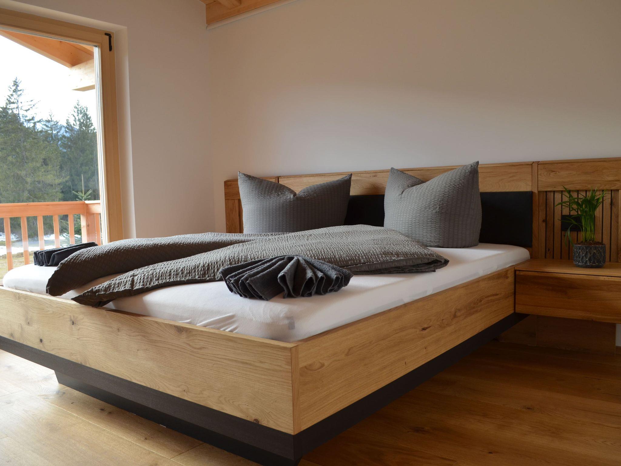 Die drei komfortablen Schlafzimmer im Obergeschoß bieten ausreichend Platz für erholsame Nächte, während die großen Fenster und der geräumige Balkon Sitzgelegenheiten einen atemberaubenden Blick auf die umliegende Berglandschaft freigeben. Jedes Schlafzimmer verfügt über einen eigenen Flachbildfernseher und ein gemütliches Doppelbett. Im 1. Stock gibt es zwei stilvolle Bäder mit Walk-In-Duschen.