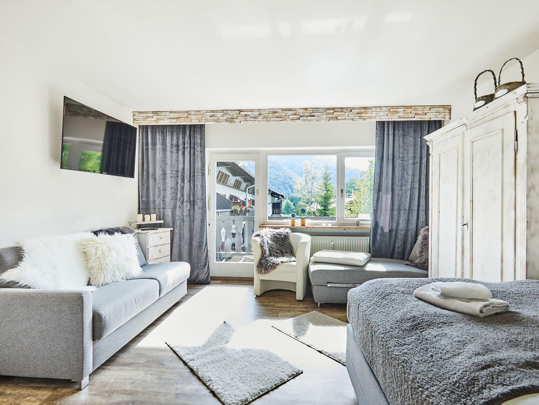 Das ruhig gelegene 1-Raum-Appartment „Loferblick“ überzeugt mit neuer, moderner Einrichtung (2023) ganz nach dem Motto: „Reinkommen und wohl fühlen!“ Der in hellen Tönen gehaltene Wohn- und Schlafraum ist praktisch und gemütlich eingerichtet. Das große Boxspringbett garantiert erholsamen Schlaf um fit für Wanderungen oder E-Bike-Touren (Verleih über den Vermieter T&T) zu sein. Zum Entspannen in der Wohnung befinden sich zusätzlich zum Bett noch ein bequemes Sofa und Liegesofa, welches nicht nur besten Blick auf den Flachbild-TV bietet, sondern auch einen verträumen Blick durch das bodentiefe Fenster in die grüne Natur. Die moderne Küche lädt zum Zubereiten regionaler Schmankerl ein, die dann auf dem Esstisch im Wohnbereich genossen werden können. Ein besonderer Platz ist der möblierte Balkon der Wohnung. Mit einem unverbauten Blick auf herrlich grüne Bergwälder, lässt sich hier jeder Tag entspannt ausklingen. Dank Wohlfühl-Badezimmer mit Dusche, Waschbecken, Haartrockner und WC lässt sich hier frisch in den Tag starten.