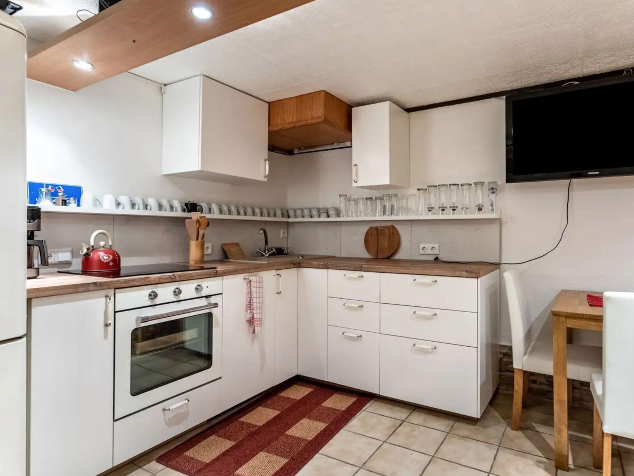 Ein große Gemeinschaftsküche mit Dartscheibe und gemütlicher Sitzecke, sowie eine infrarotkabine ist für jede Wohnung kostenlos zugänglich.