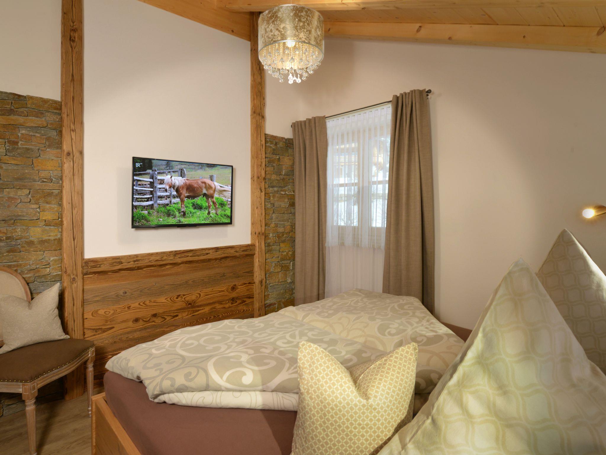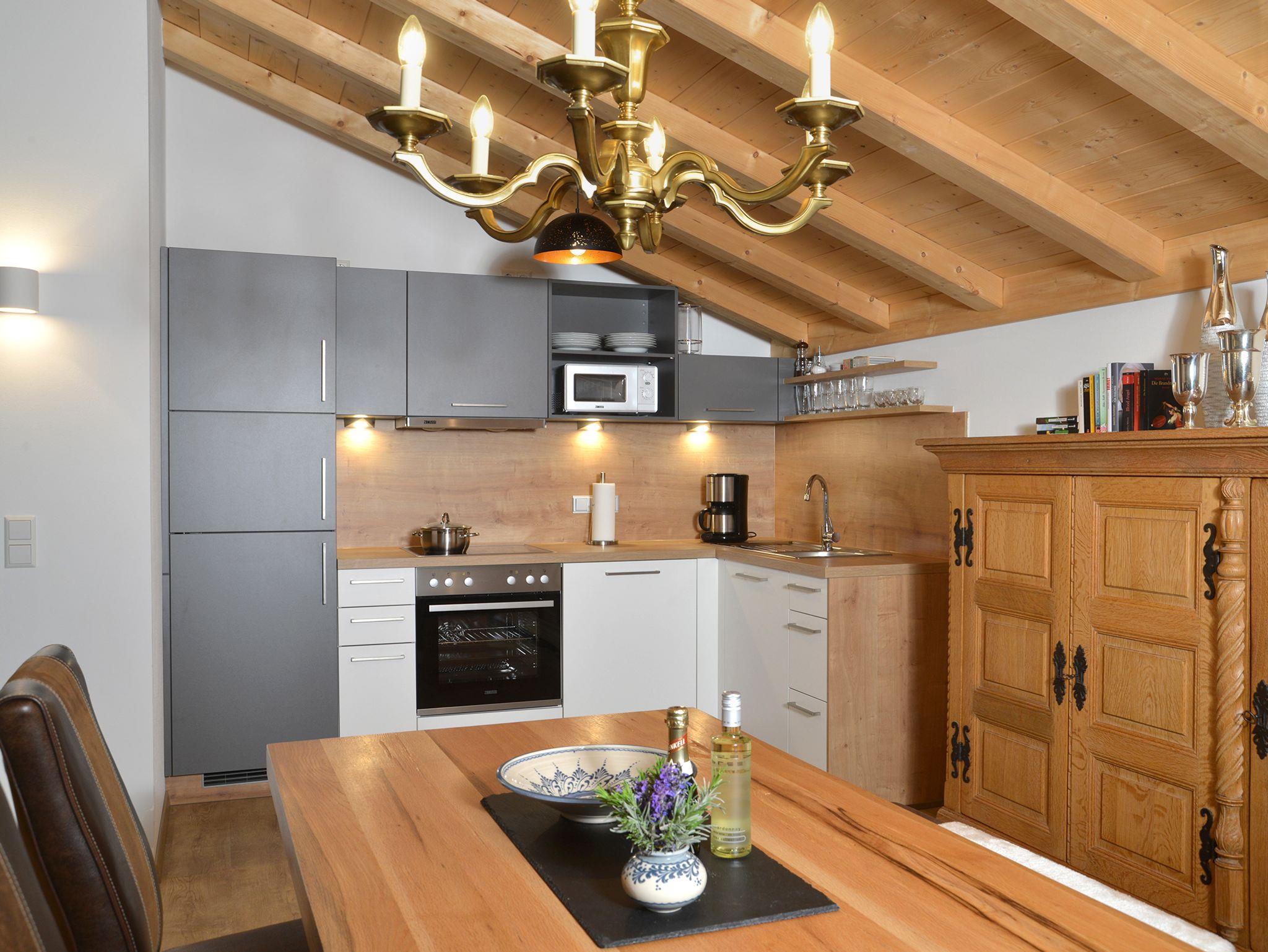 Schlafzimmer mit Doppelbett, schöner Altholzwandgestaltung, Eichen-Kleiderschrank, HD-Flachbildschirm, Schlafhöhle mit Doppelbett, Eichen-Kleiderschrank, HD-Flachbildschirm, voll ausgestattete, moderne Küche mit angrenzendem Wohnraum inkl. Backofen, Ceranfeld mit vier Feldern, Dunstabzugshaube, Spülmaschine, Kühlschrank inkl. extra Gefrierfach, Mikrowelle, Toaster, Wasserkocher, Filter-Kaffeemaschine, Eierkocher Wohnraum mit gemütlicher Sofaecke, HD-Flachbildschirm mit Kabelanschluss, kostenloses WLAN. Badezimmer mit ebenerdiger Regen- und Handdusche, Waschtisch, Bio-Zedernholzinfrarotwärmekabine (individuell temperierbar), Fön, Kosmetikspiegel, Handtuchwärmer, Fußbodenheizung. Kuschelige Dusch- und Handtücher für den Aufenthalt, separates WC mit Waschtisch, Staubsauger, Wolldecken, Panoramabalkon mit herrlichem Kaiserblick, eigener KFZ- Stellplatz direkt am Haus (1 Stellplatz pro Wohnung)