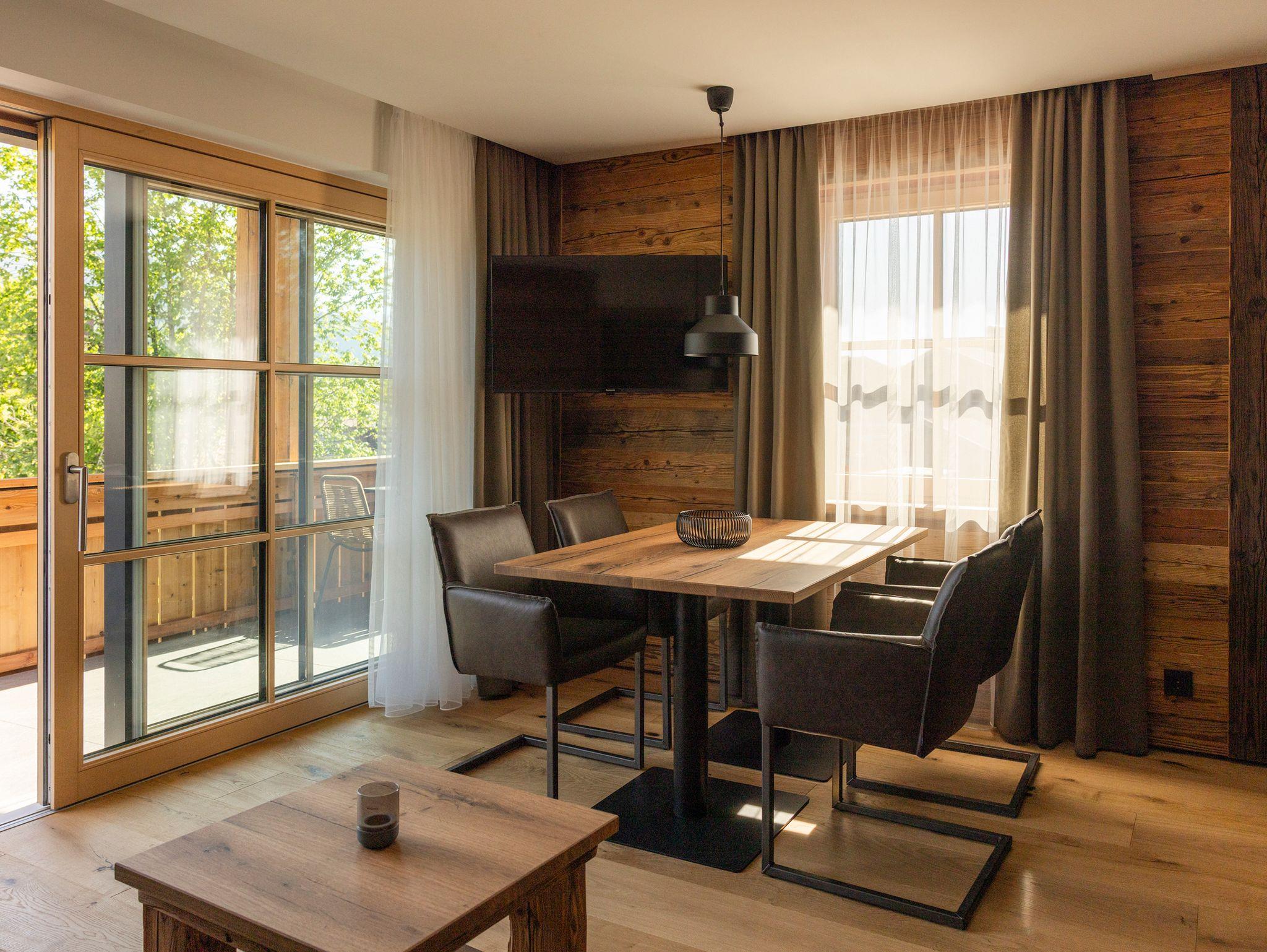Für alle, die Ruhe mit Stil und Natur mit Komfort verbinden möchten: Sobald Sie Das Denisl betreten, stellt sich ein tiefes Gefühl der Erholung ein. Mitten im Herzen von Reit im Winkl, zentral an der Sonnenloipe, wartet ein neues Apartmenthaus mit 14 stilvollen, hellen Ferienwohnungen voller Flair auf Ihre unvergessliche Zeit im Chiemgau. Viel Altholz, gedeckte Farben, indirekte Beleuchtung, schwarze Armaturen und große Türen zu Balkon oder Terrasse machen Ihre Urlaubstage zu einem echten Design-Erlebnis. Freuen Sie sich auf bestens ausgestattete Küchen, einladende Essbereiche, gemütliche Ledersofas, große Waschtische, kuschelige Boxspringbetten und Regenduschen, die Sie rundum verwöhnen und entspannen lassen. Im Haus zählt der großzügige Aufenthalts- und Eventraum mit 120?m² zu einem beliebten Treffpunkt, um gemütlich zusammenzusitzen, gemeinsam zu feiern oder Tagungen durchzuführen – ausgestattet mit Küche, Theke, Tontechnik, Getränke-/Snackautomat und einer großen Sonnenterrasse mit Blick ins Grüne. Für Aktive Urlauber beginnen direkt vor der Tür idyllische Wanderwege, tolle Biketouren und gepflegte Skiloipen im Winter. Ihre Ausrüstung ist dabei bestens aufgehoben: im großen Skikeller mit Spinden und Skiwerkstatt sowie im Radlhäusl mit Fahrraddusche, Werkstatt und Spinden. Für entspannte Momente sorgt die charmante Sauna im Garten – Ihr Rückzugsort für Körper und Geist. Familien freuen sich über den Spielplatz und das Freibad ganz in der Nähe, aktive Urlauber schätzen schätzen die Haltestelle für den Wanderbus direkt hinter dem Haus. Kostenlose Parkplätze sind in ausreichender Anzahl im Hof vorhanden und wer elektrisch unterwegs ist, findet eine E-Ladestation bei der nahen Tourist-Info.