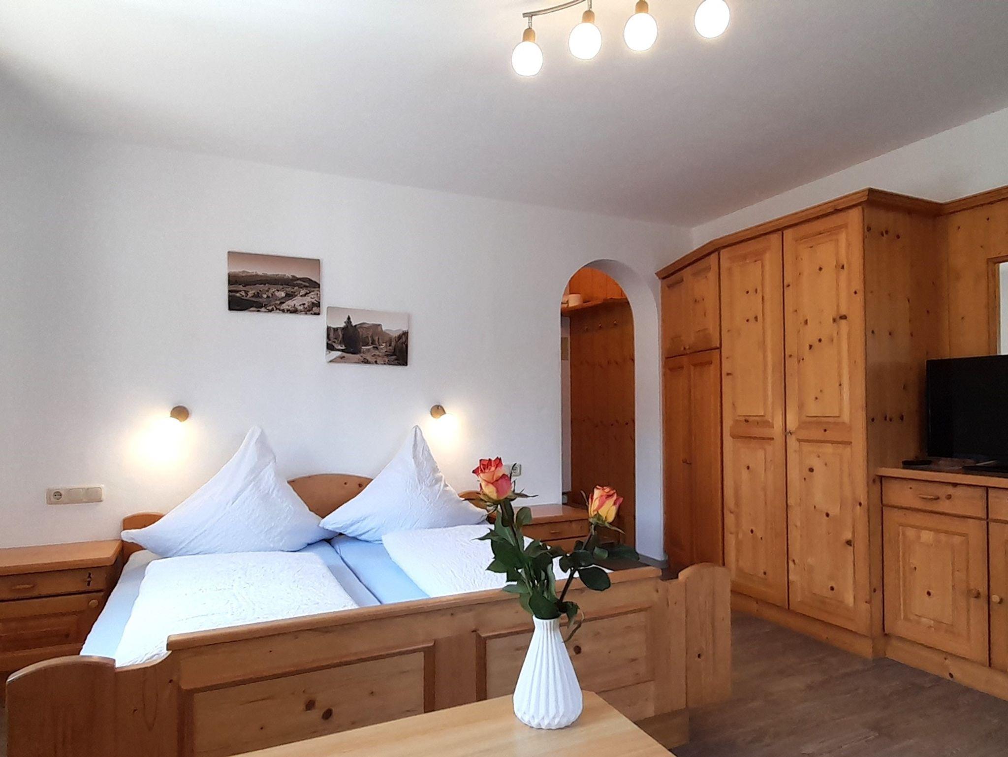 Unser Zimmer Winklmoos befindet sich im 1. Stock, hat eine gemütliche Sitzecke und einen schönen Balkon mit wunderschöner Aussicht in Richtung Klausenberg. Das Mehrbettzimmer ist ein ideales Familienzimmer. Die beiden Kinderbetten (Etagenbett) stehen in einem seperatem Raum, mit Türe abgetrennt, aber durch das Schlafzimmer erreichbar.