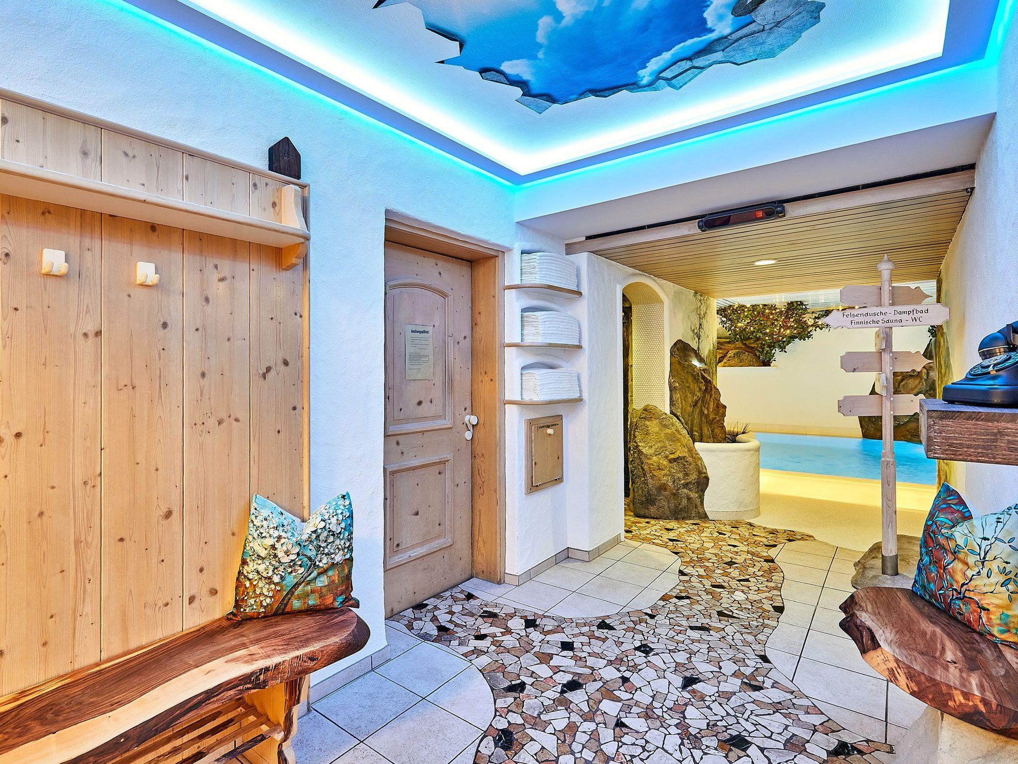 In unserer romantischen Badelandschaft mit Sauna und Dampfbad können Sie die Seele baumeln lassen und bei einer Kosmetikanwendung oder Massage sich vom Alltag erholen. Im Sommer steht noch ein kleines Außenbecken zur Verfügung.