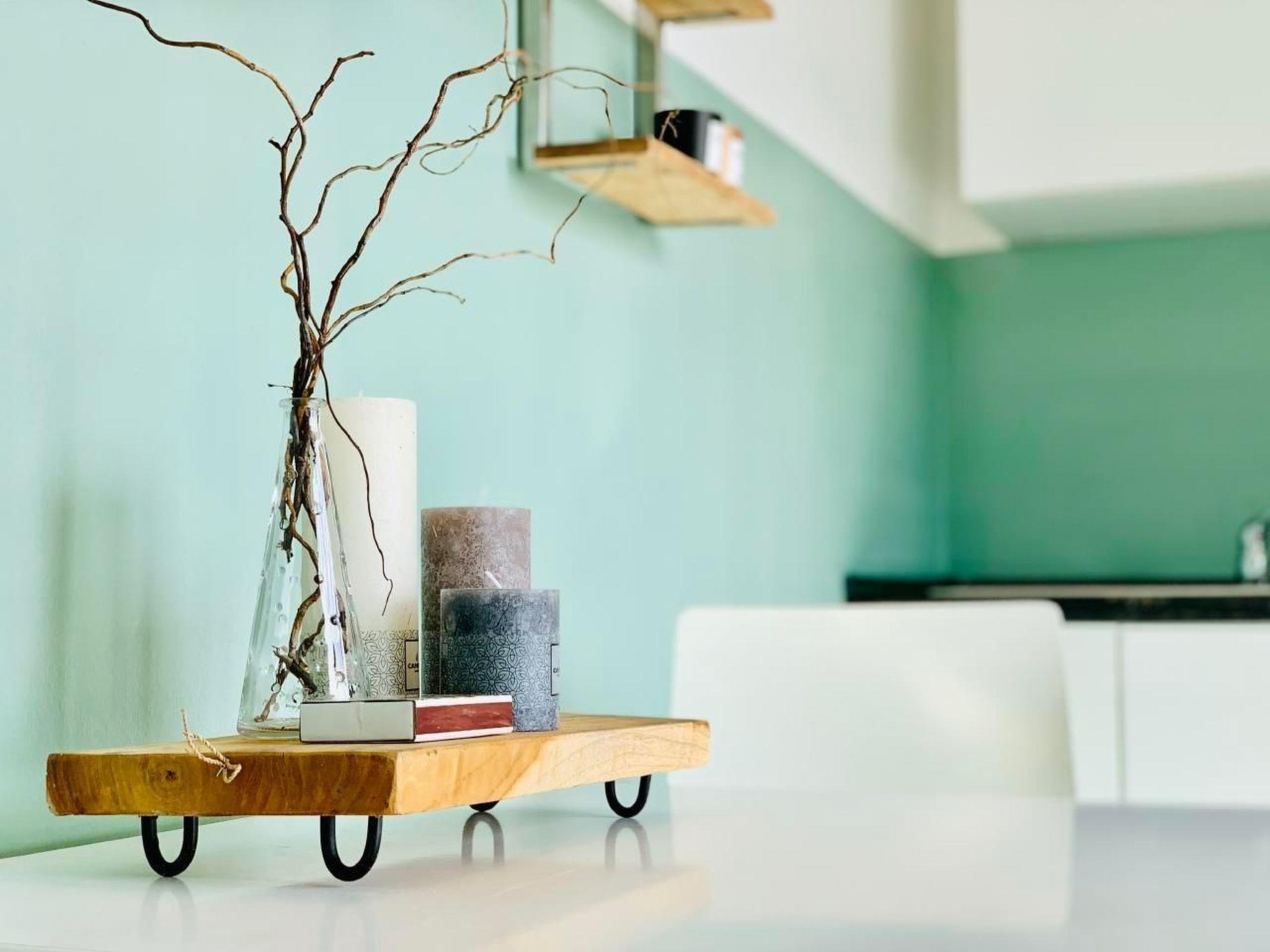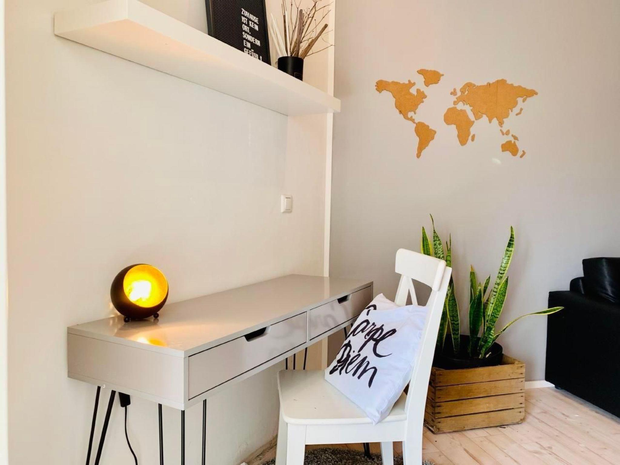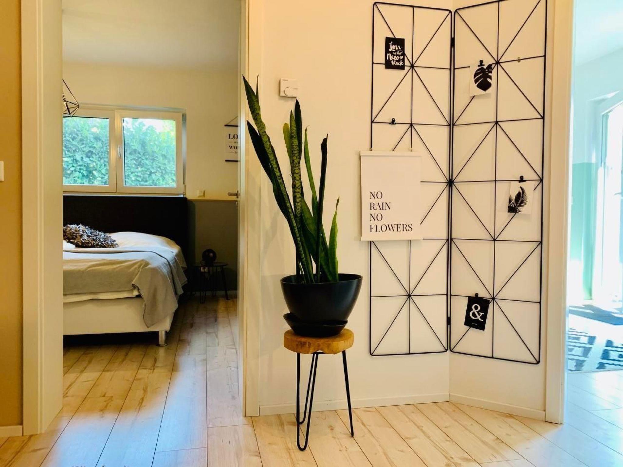 Inside, you will find a lovingly furnished living area that leaves nothing to be desired. The spacious living room has a comfortable sofa set, a practical writing corner and a 42-inch flat-screen TV equipped with Astra and Amazon Fire Stick, ideal for relaxing evenings. The high-quality sofa bed with a 22 cm thick hard foam mattress promises restful sleep for up to two guests. In the bedroom you will find an inviting king-size box-spring bed, suitable for two people, as well as enough space for an additional cot. A wardrobe and three chest cupboards offer plenty of storage space.