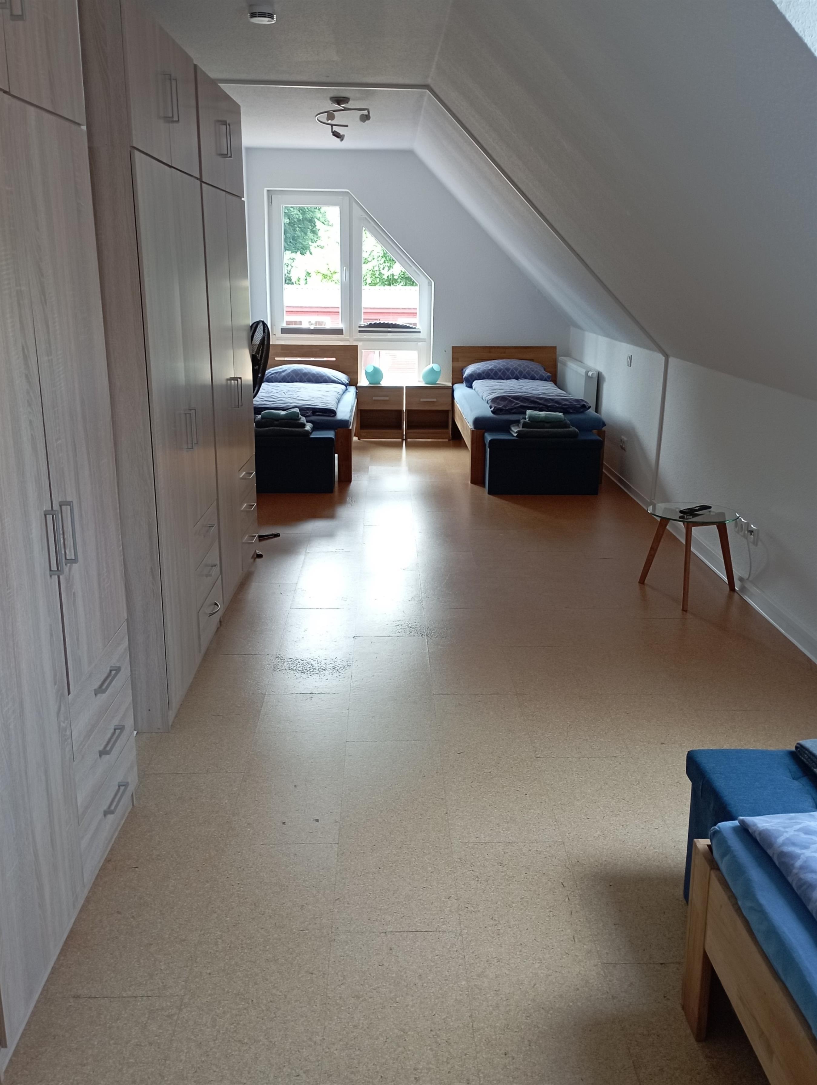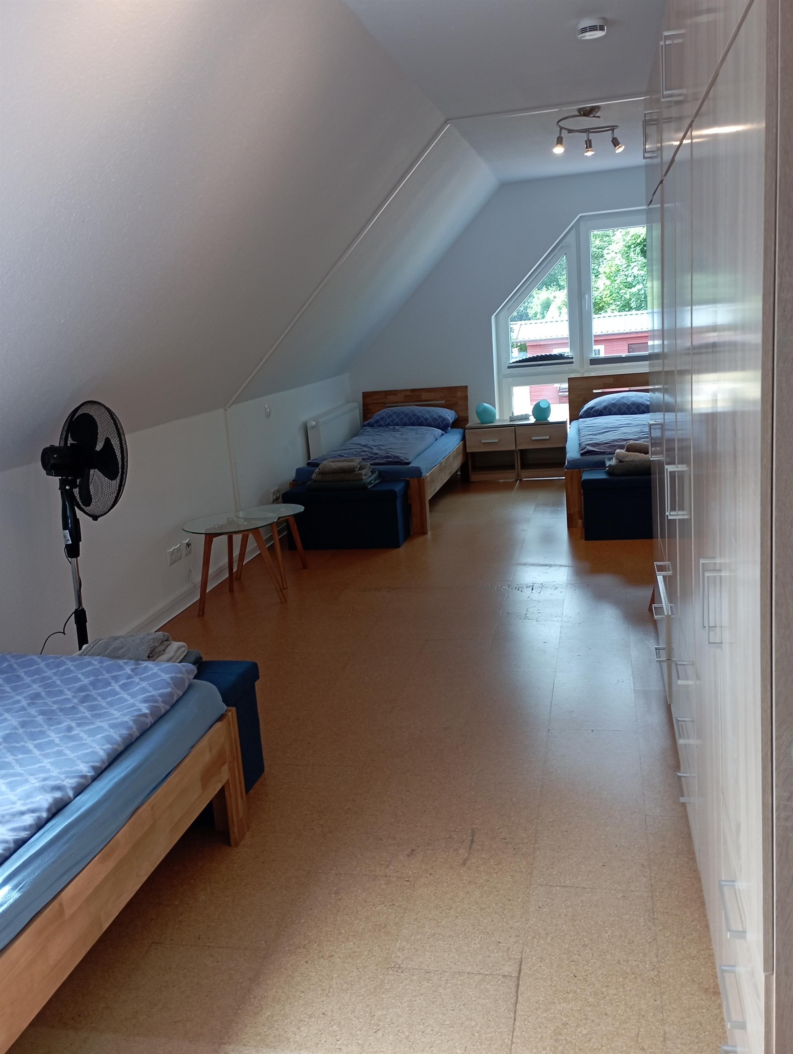 Das Ferienhaus verfügt über vier Schlafzimmer und zwei voll ausgestattete Badezimmer. Im Erdgeschoss befindet sich ein Schlafzimmer für zwei Personen, das wahlweise mit einem Doppelbett oder zwei Einzelbetten eingerichtet werden kann. Ebenso befindet sich im Erdgeschoss ein barrierearmes Duschbad, das auch für Gäste mit eingeschränkter Mobilität geeignet ist. Im Obergeschoss liegen drei weitere Schlafzimmer. Ein Zimmer ist für zwei Personen vorgesehen, zwei weitere Zimmer bieten Platz für jeweils drei Personen. Alle Betten können je nach Wunsch als Einzel- oder Doppelbetten gestellt werden. Die gewünschte Konfiguration kann im Vorfeld mit dem Gastgeber abgestimmt werden.