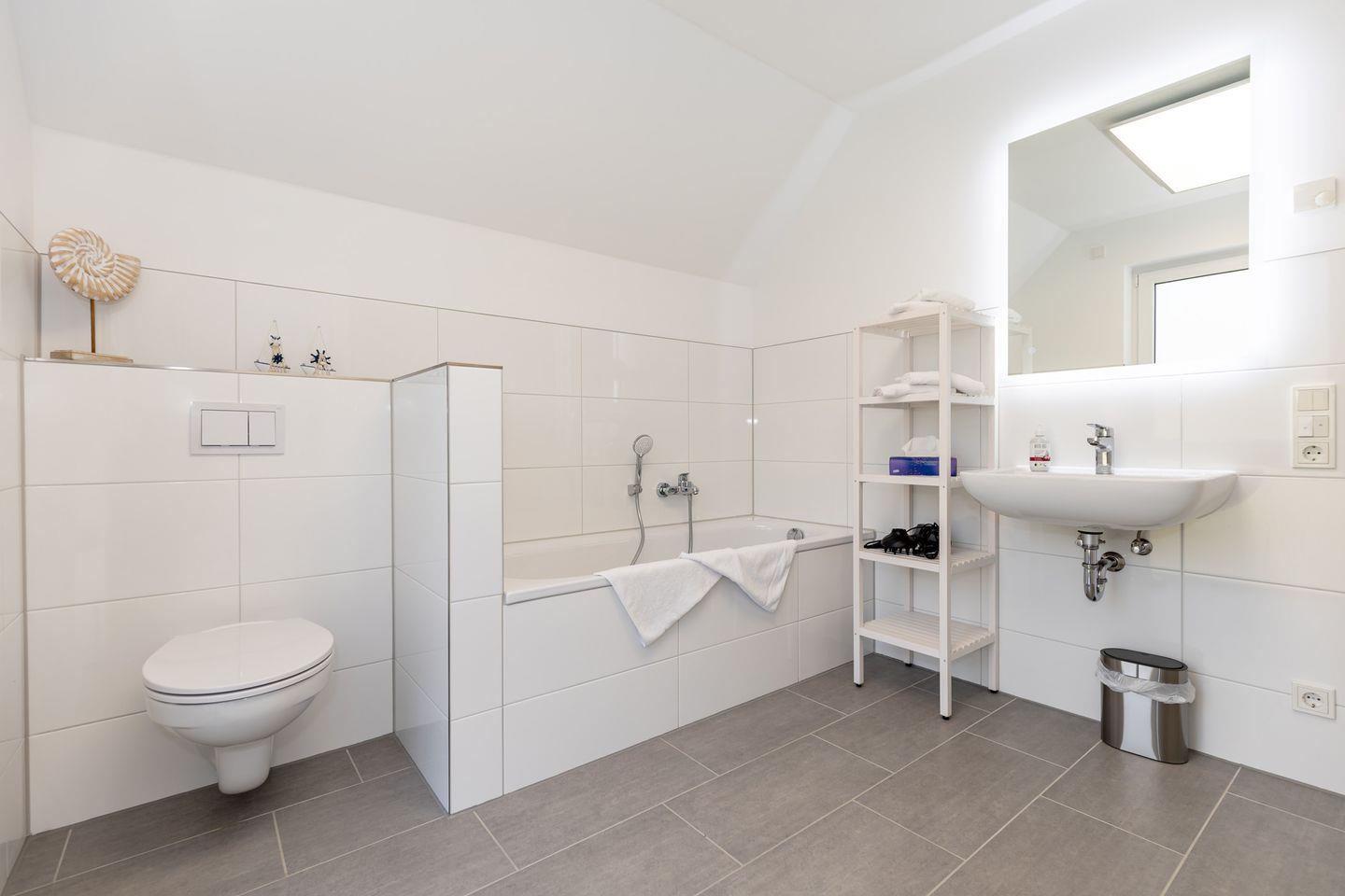 Das Ferienhaus verfügt über drei Schlafzimmer, die alle liebevoll gestaltet und komfortabel eingerichtet sind. Zwei der Schlafzimmer sind mit gemütlichen Doppelbetten ausgestattet, während das dritte Schlafzimmer zwei Einzelbetten bietet, ideal für Kinder oder weitere Gäste. Ein Vollbad mit Badewanne und Dusche sorgt für Entspannung nach einem ereignisreichen Tag an der Ostsee, und ein zusätzliches Gäste-WC bietet zusätzlichen Komfort.