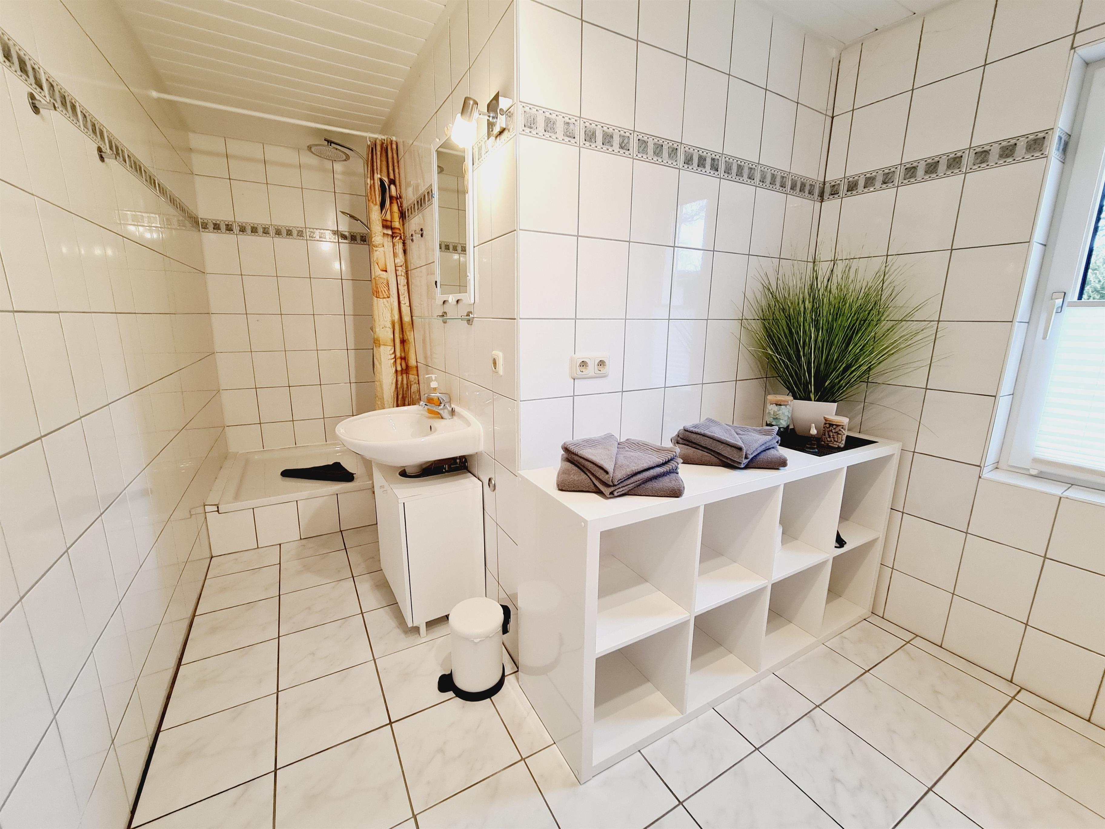 Das Badezimmer verfügt über eine Dusche und einen Haartrockner. Für unsere Gäste steht ein PKW - Stellplatz bereit.