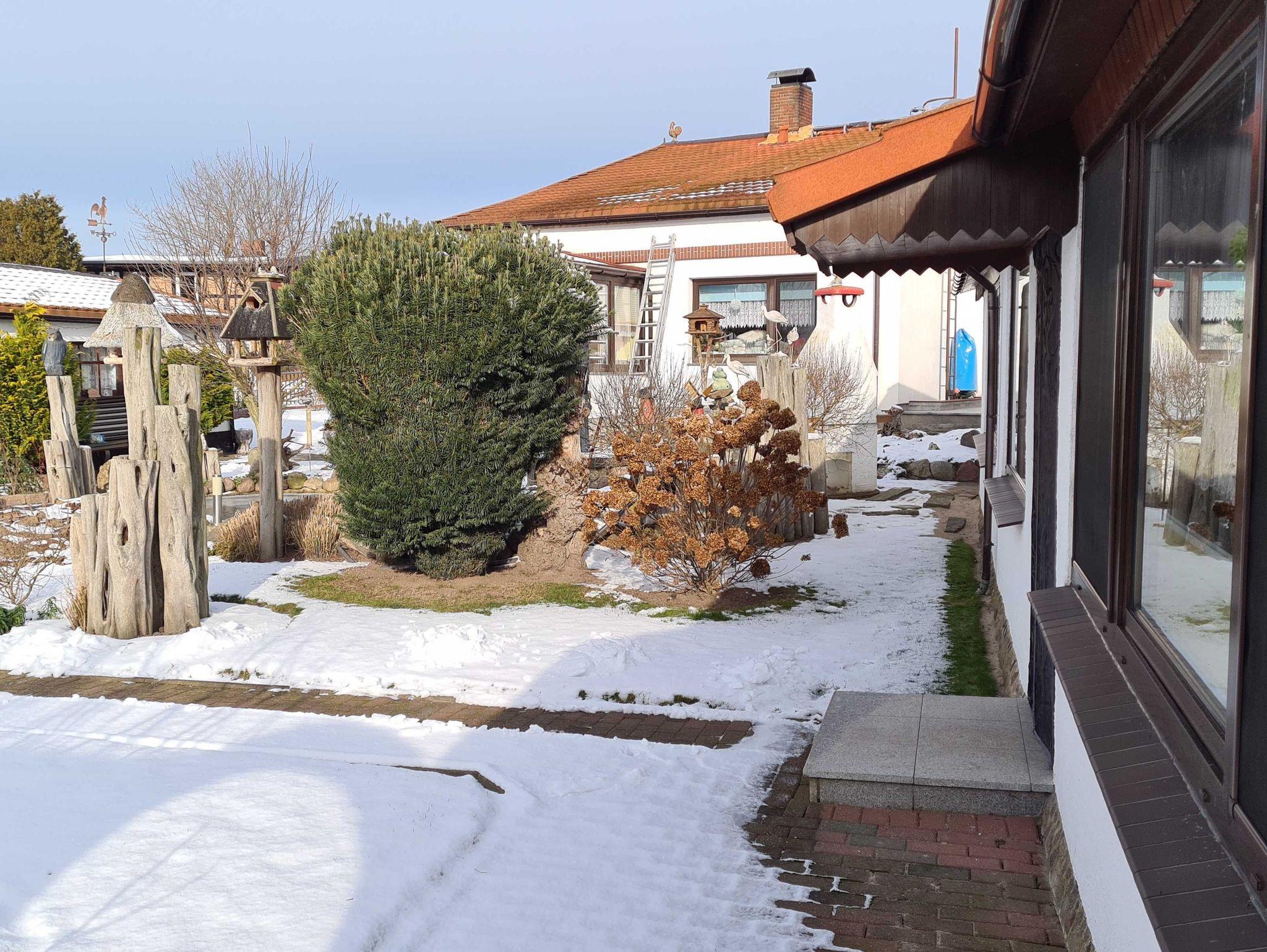 Am Haus: Gepflegter, eingezäunter Garten. Überdachte Terrasse mit Grillkamin, Räucherofen und Gartenmöbel. Kleiner Spielplatz im Garten für Kinder.