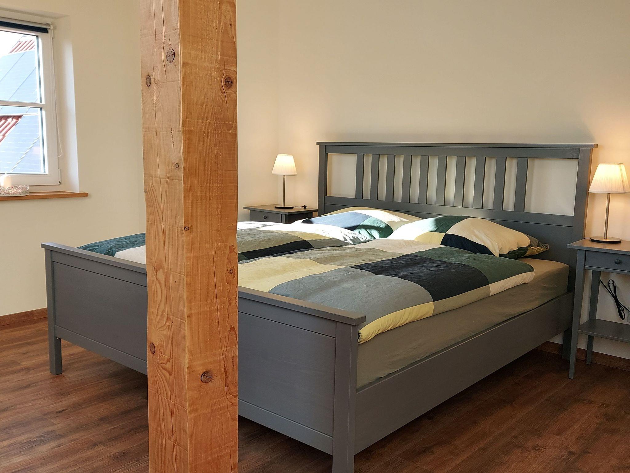 Liebevoll eingerichtete 1- und 2-Raum-Ferienwohnungen im Obergeschoss der modernisierten Scheune bieten nicht nur modernen Komfort, sondern auch einen schönen Wiesenblick. Die Möglichkeit, auf der Loggia, dem Balkon oder der Hofterrasse zu entspannen, rundet das Urlaubstag perfekt ab. Alle Unterkünfte sind haustierfrei.