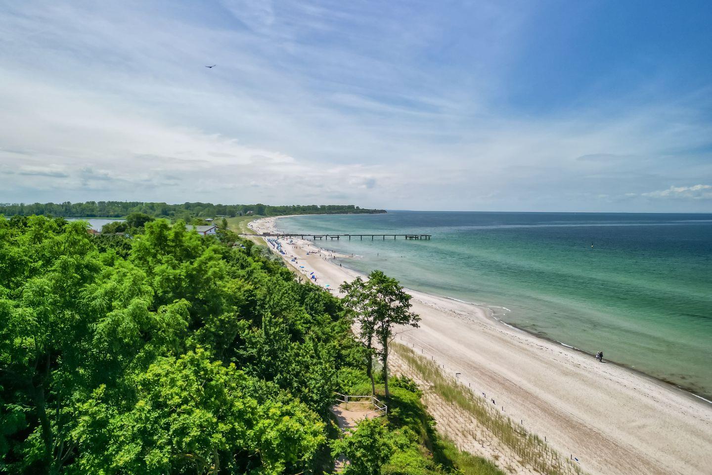 Auch aus dem großzügigen Schlafzimmer mit Doppelbett bietet sich nach erholsamem Schlaf der direkte Blick auf die Ostsee. Von beiden Räumen gibt es einen direkten Zugang auf den Balkon.
