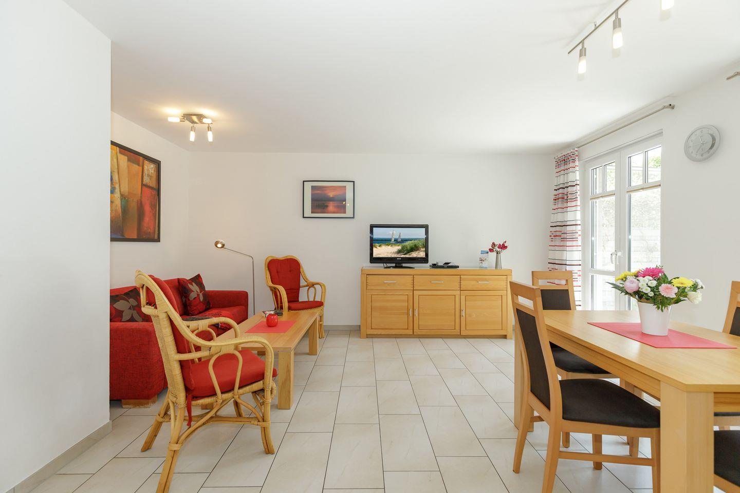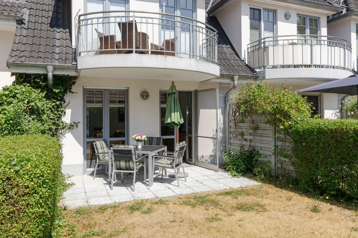 Ein besonderes Highlight ist die eigene Terrasse mit Gartenmöbeln und Sonnenschirm sowie Blick ins gepflegte Gartengrün – der ideale Rückzugsort zum Frühstücken oder Entspannen nach einem Strandtag. Die Wohnung ist zudem haustierfreundlich (max. 2 Tiere), kinderfreundlich und als Nichtraucherobjekt ausgewiesen. Jugendgruppen sind nicht gestattet.