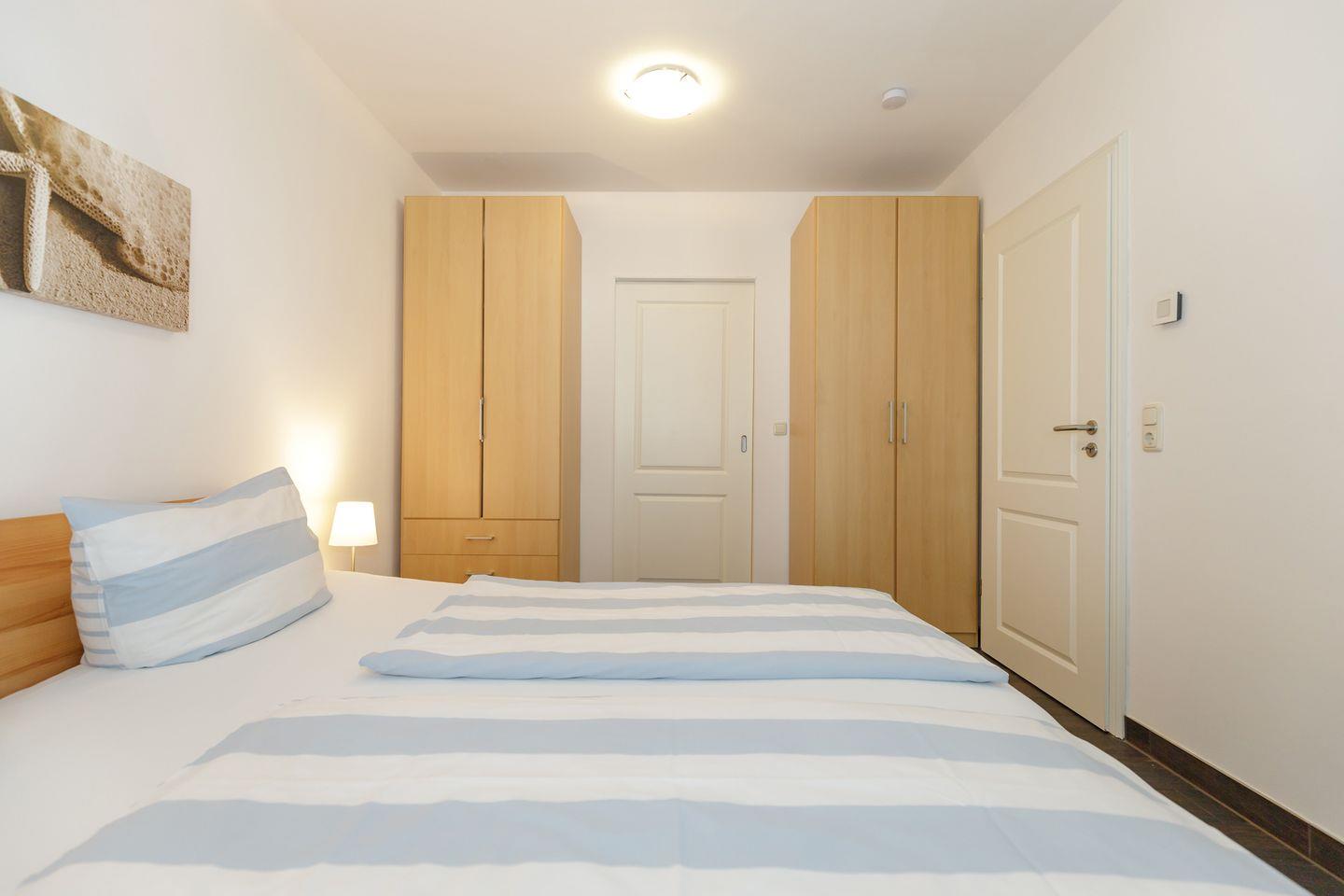 Im Schlafzimmer befindet sich ein Doppelbett (180x200),