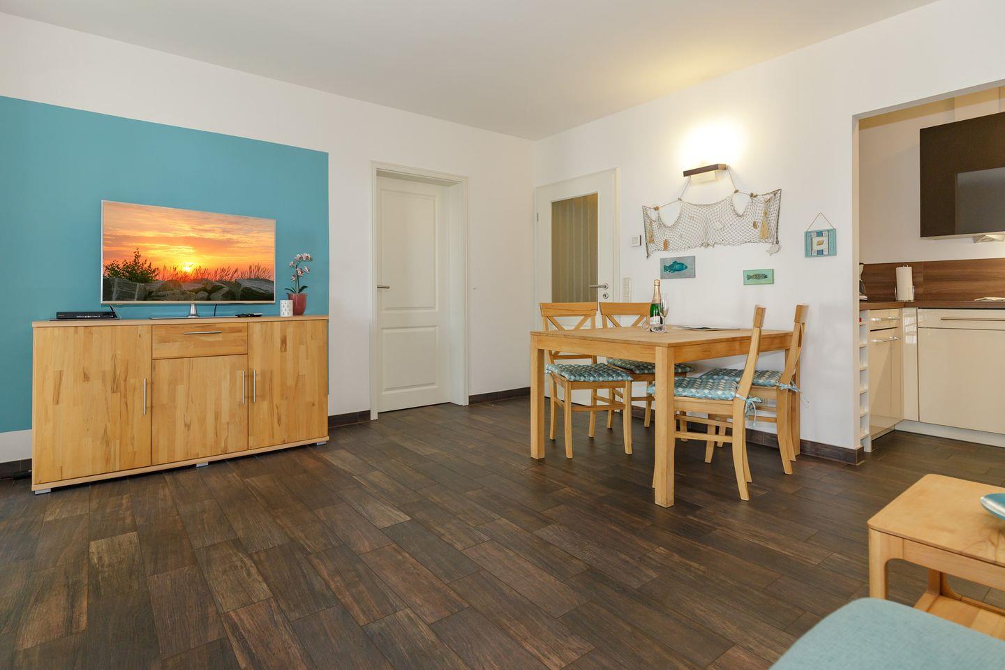 Im Wohn/Essbereich befinden sich TV, Radio und CD.