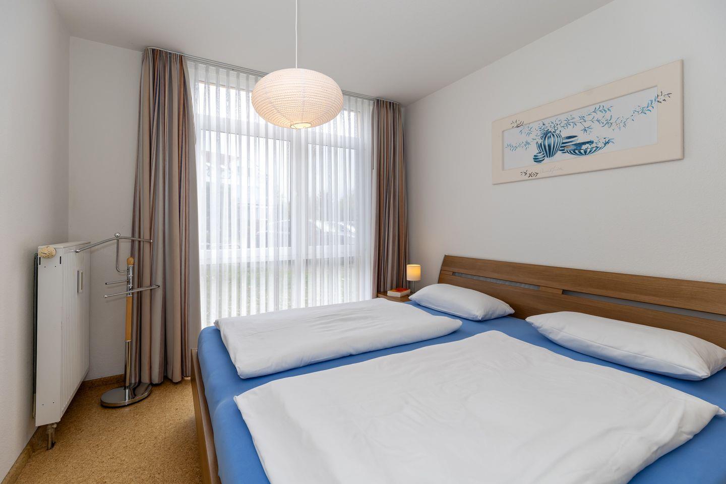 Das Schlafzimmer mit Doppelbett (200x200) bietet Ihnen erholsamen Schlaf.