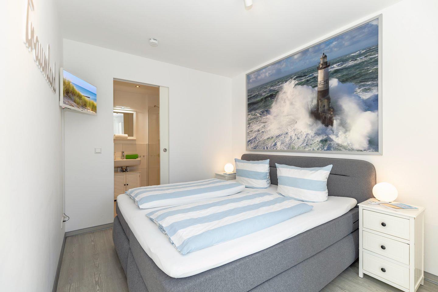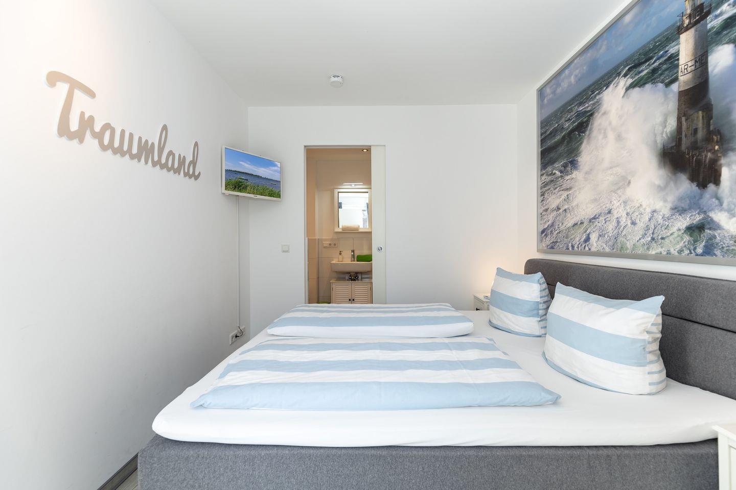 Das Schlafzimmer mit Doppelbett (und TV) bietet Ihnen erholsamen Schlaf.