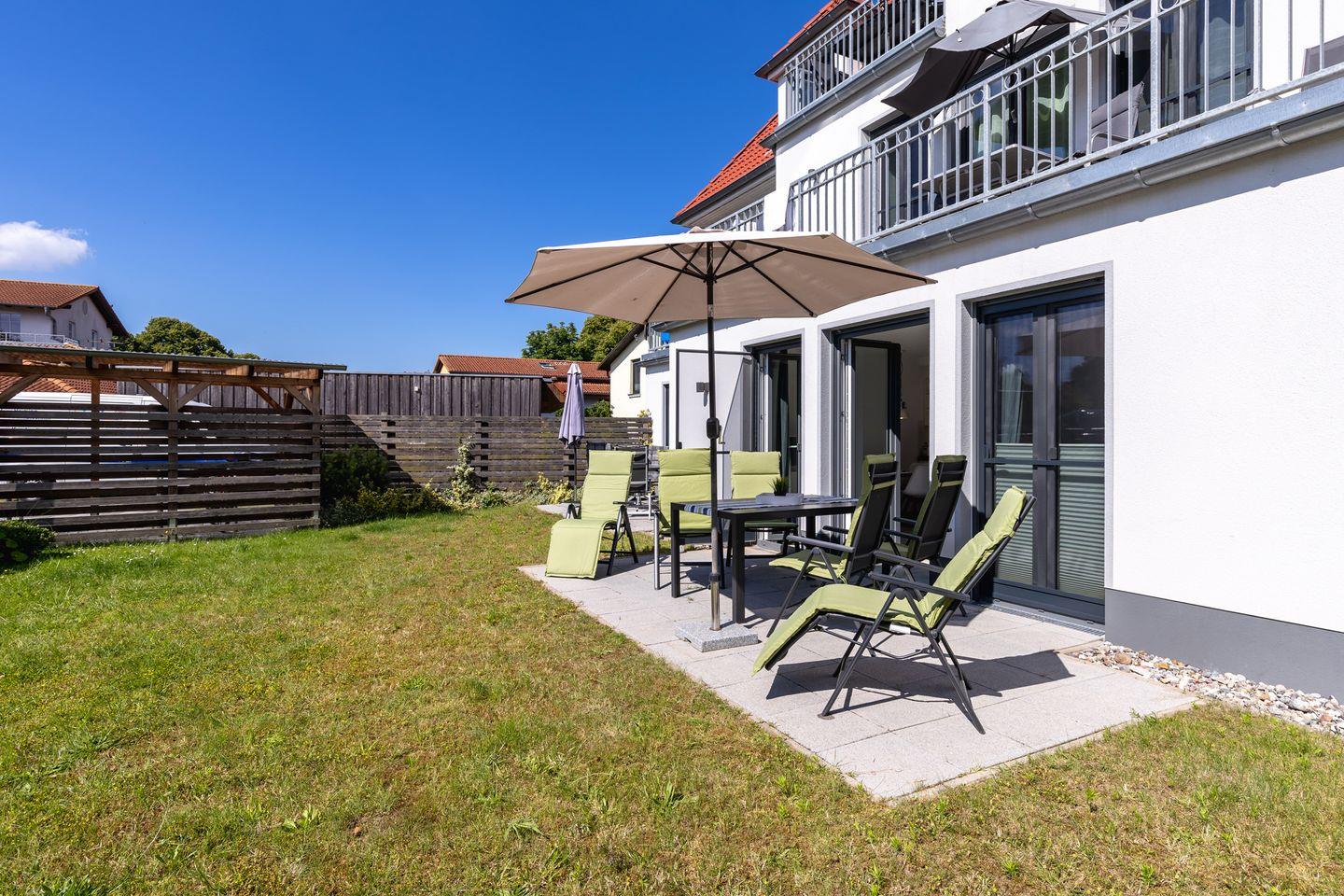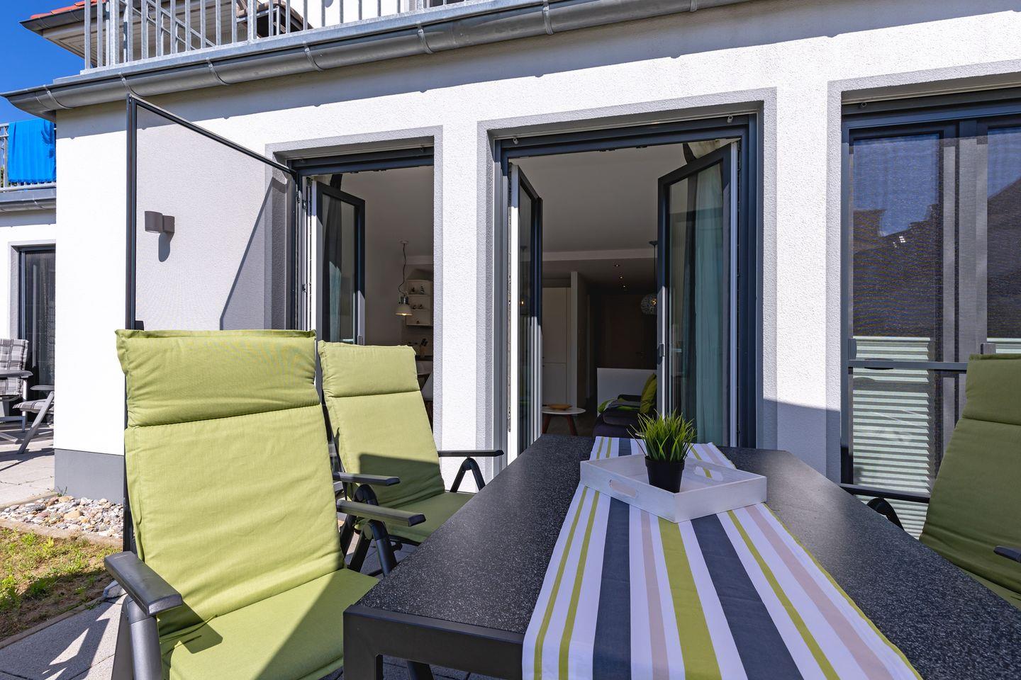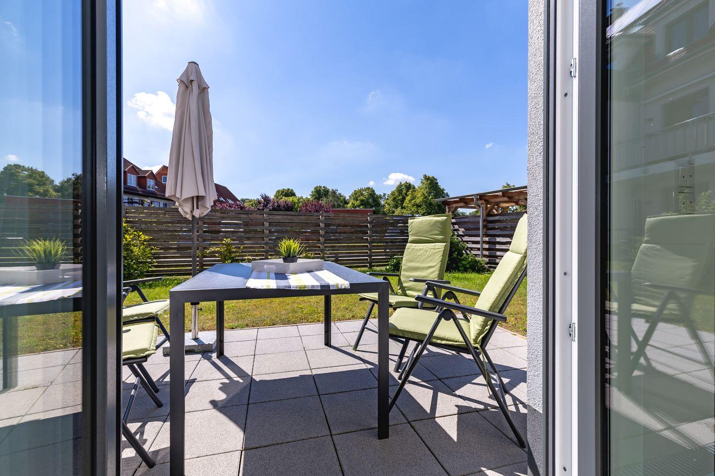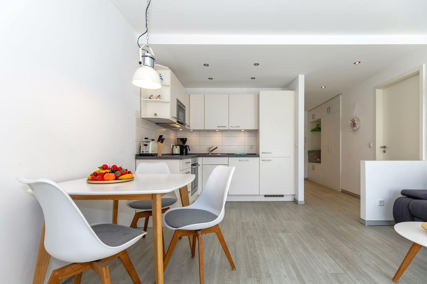 Die geschmackvoll und hochwertig eingerichtete 2-Raum-Wohnung befindet sich im EG der Residenz Blinkfüer.