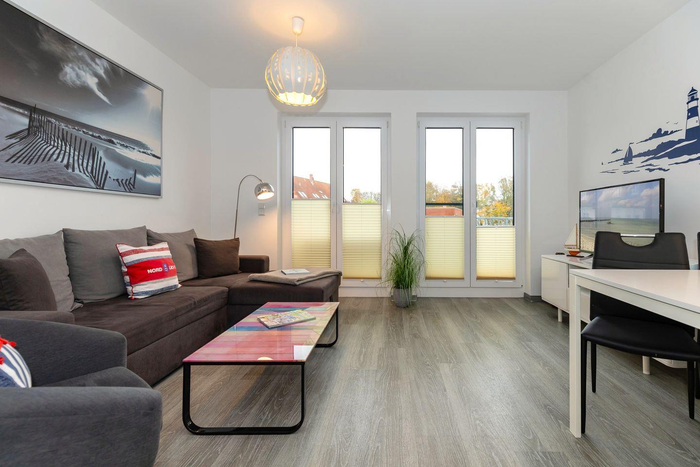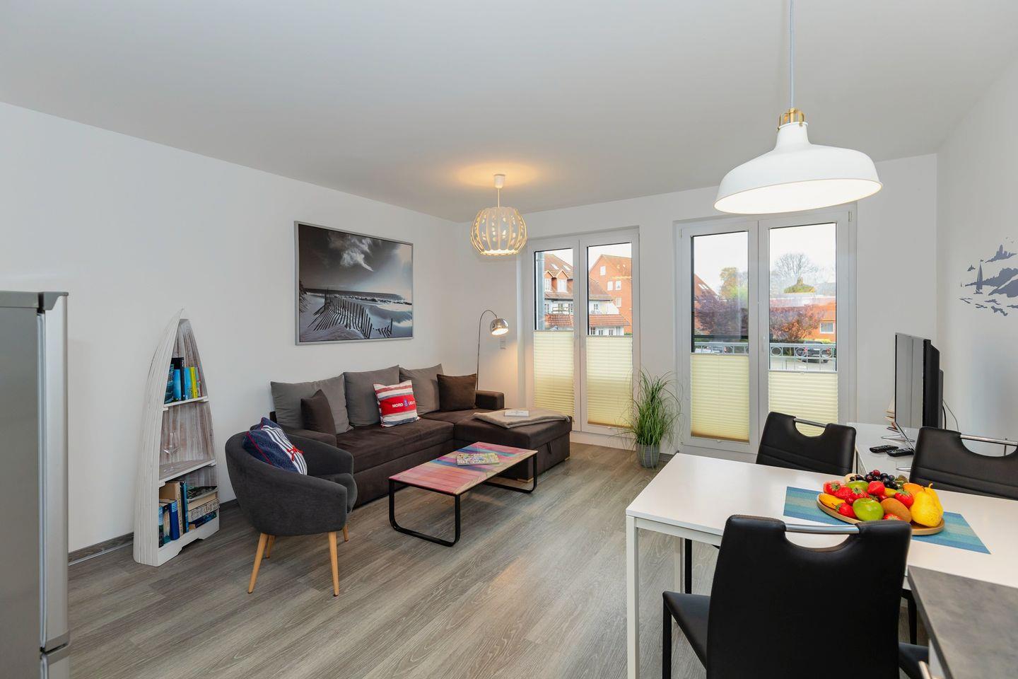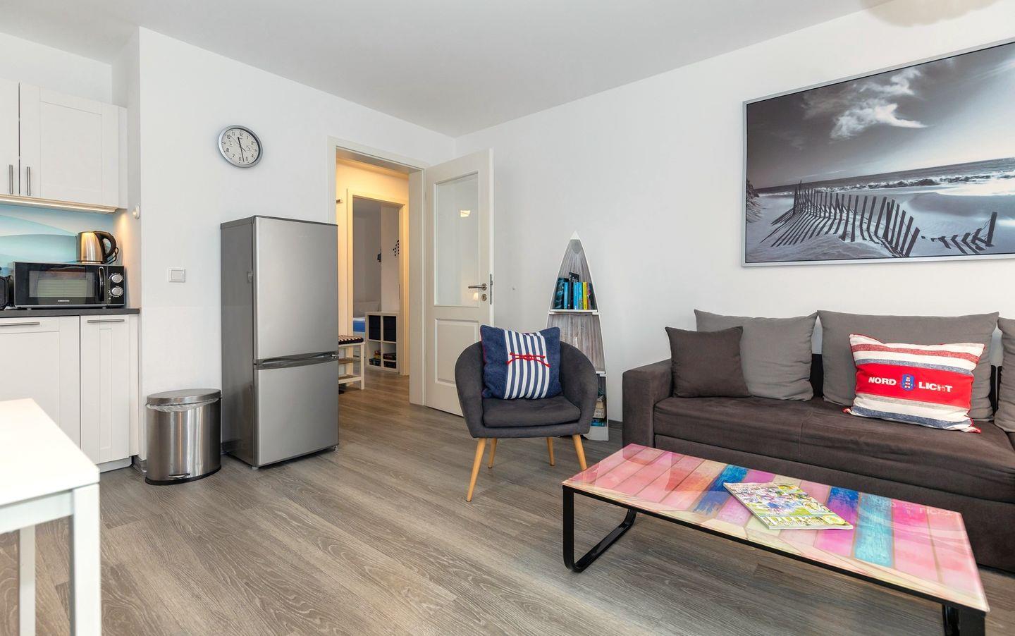 Entdecken Sie die charmante 3-Raum-Wohnung im ersten Obergeschoss der Residenz Blinkfüer, nur 300 Meter vom feinen Sandstrand entfernt. Diese liebevoll im maritimen Stil eingerichtete Wohnung bietet Ihnen den perfekten Ort für einen erholsamen Urlaub, ideal für Familien oder Paare.