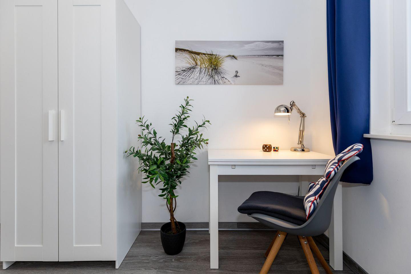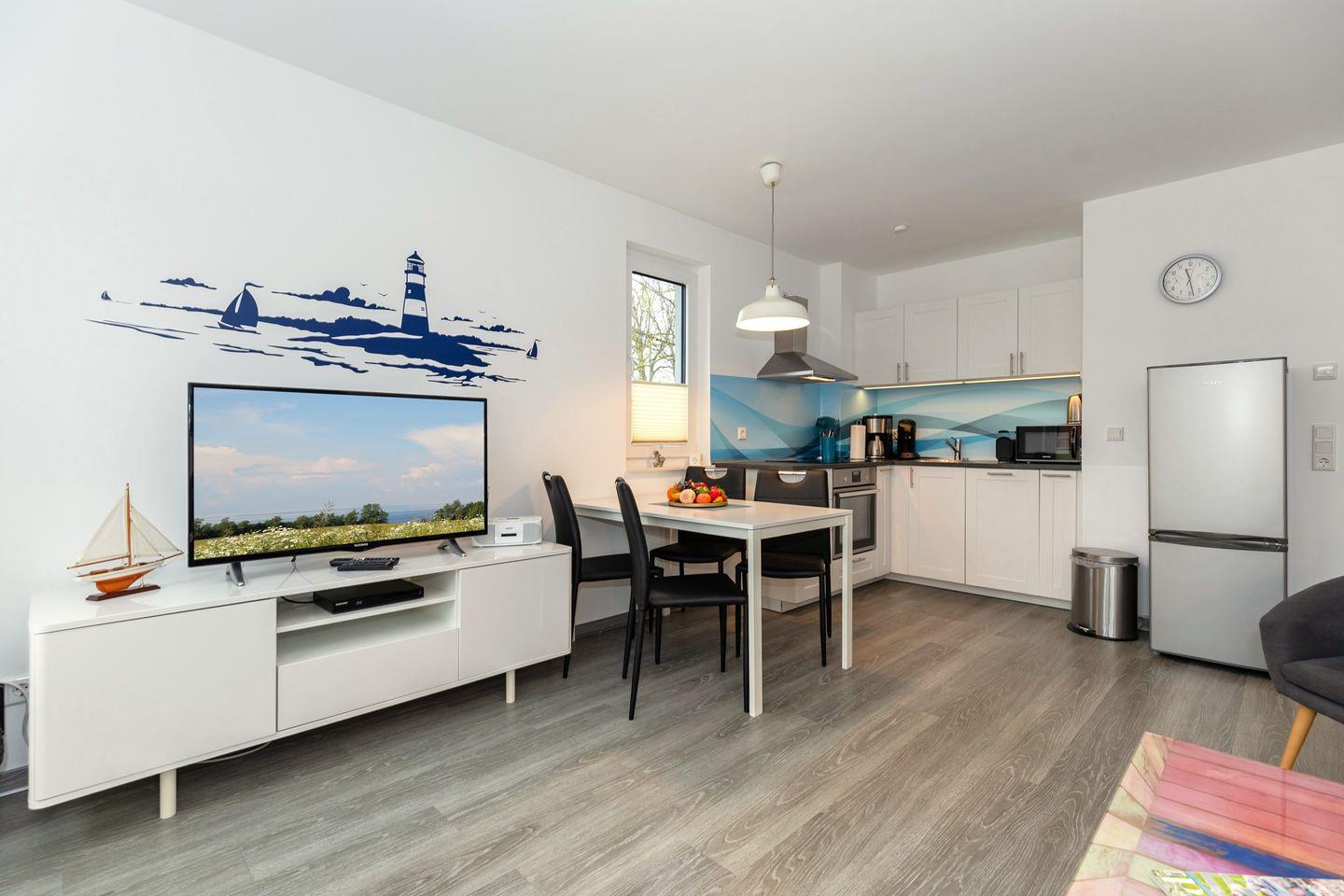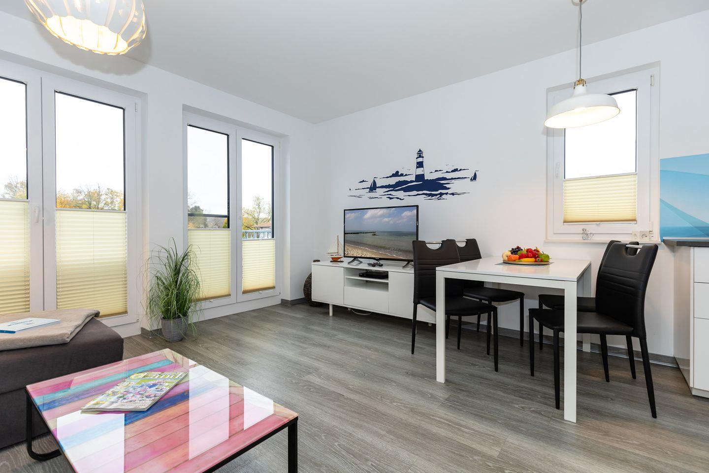 Entdecken Sie die charmante 3-Raum-Wohnung im ersten Obergeschoss der Residenz Blinkfüer, nur 300 Meter vom feinen Sandstrand entfernt. Diese liebevoll im maritimen Stil eingerichtete Wohnung bietet Ihnen den perfekten Ort für einen erholsamen Urlaub, ideal für Familien oder Paare.