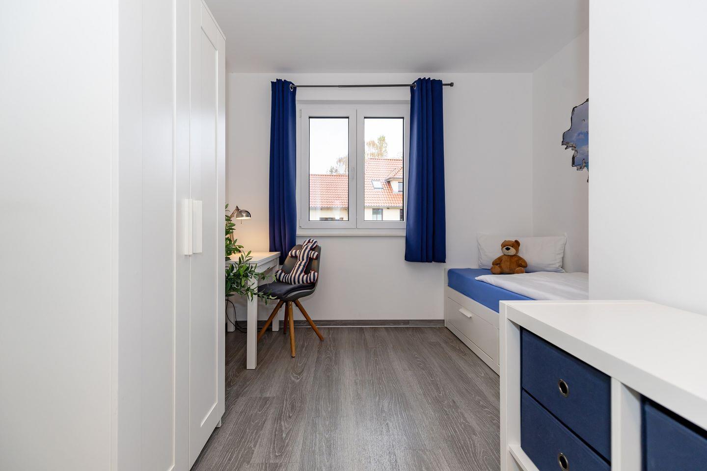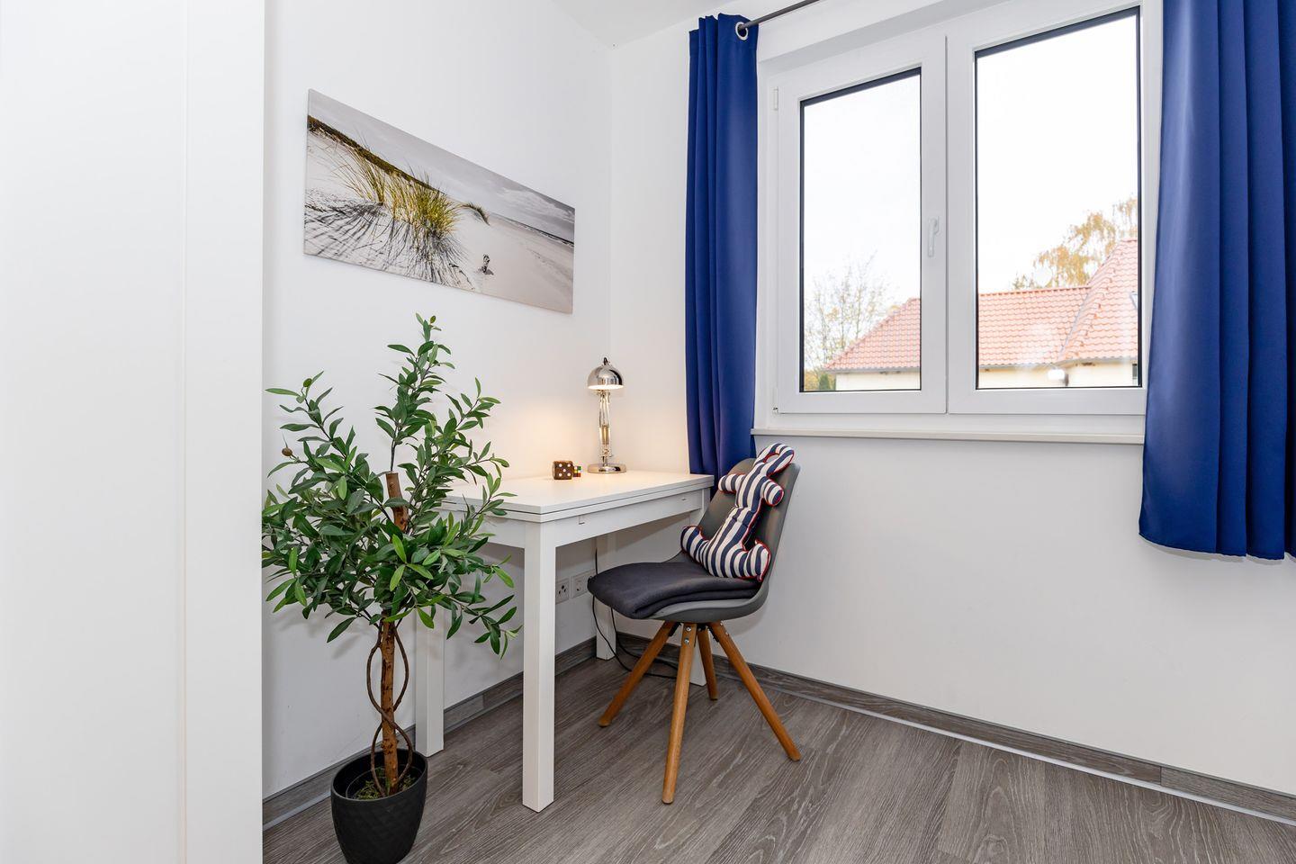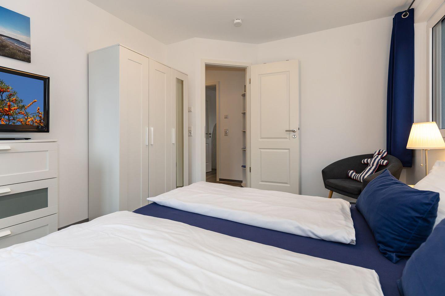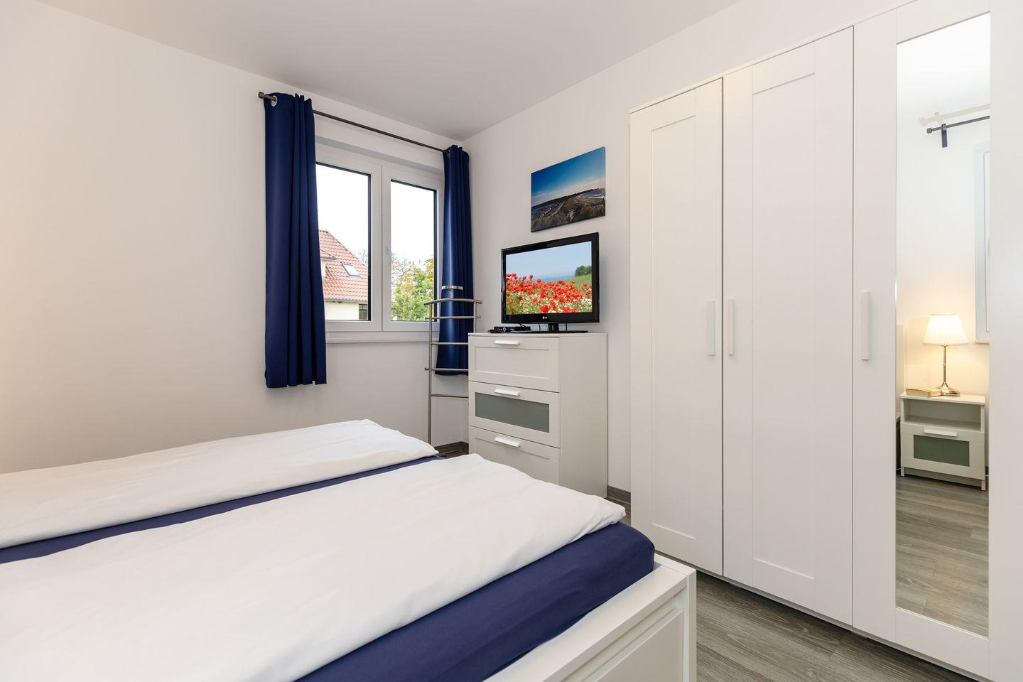 Das Schlafzimmer mit einem komfortablen Doppelbett (180x200) sorgt für erholsamen Schlaf, während das Kinderzimmer mit zwei Einzelbetten (80x200) ideal für die kleinen Gäste ist. Bettwäsche und Handtücher für bis zu vier Personen sind im Mietpreis enthalten, sodass Sie sich um nichts kümmern müssen.