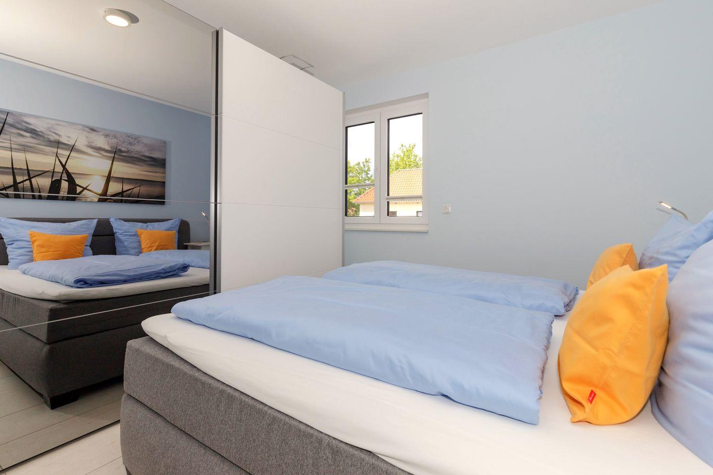 Das Schlafzimmer mit Boxspringbett (180x200) bietet Ihnen erholsamen Schlaf.