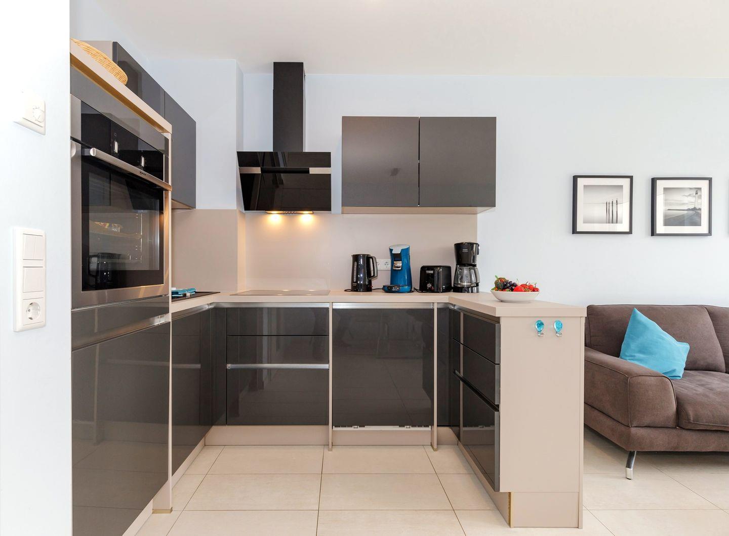 Die großzügige offene Küche ist mit allem technischen Komfort ausgestattet.